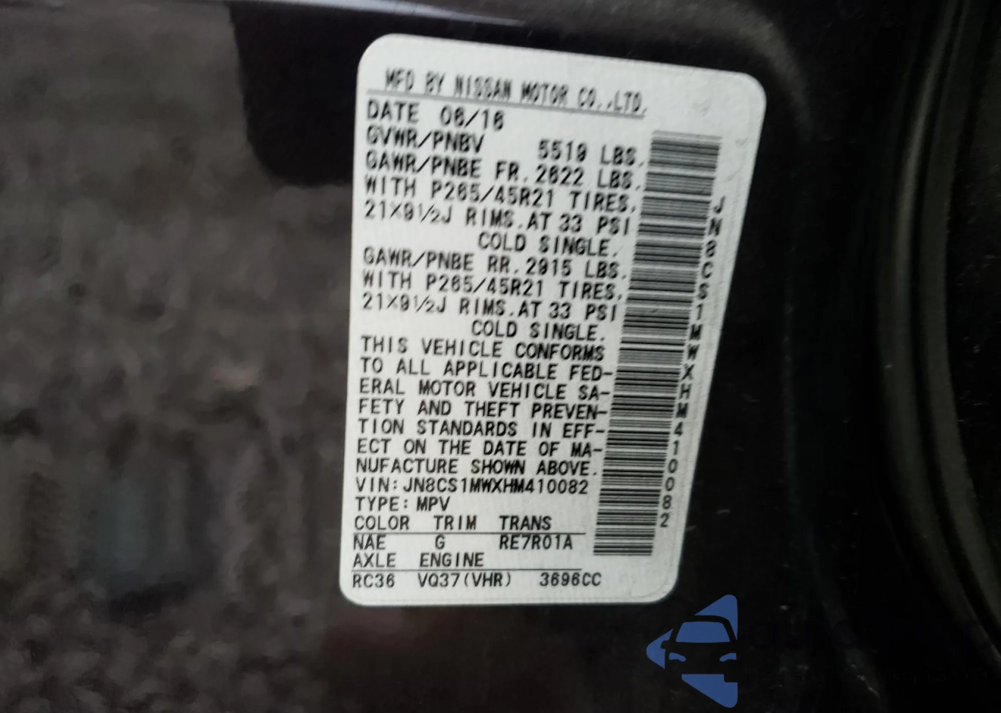 • VIN: JN8CS1MWXHM410082