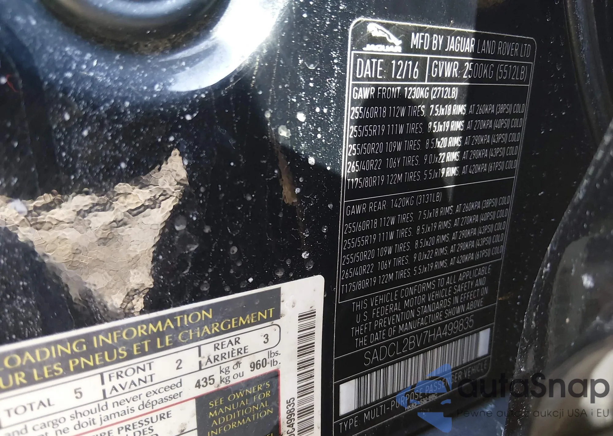 Автомобиль Jaguar F-Pace 2017 (VIN SADCL2BV7HA499835) ранее не участвовал в торгах. Документы чистые, пробег соответствует или ниже среднего по рынку. Продаётся страховой компанией — рекомендуем покупку. Доставка в порт займет около 6–8 недель.