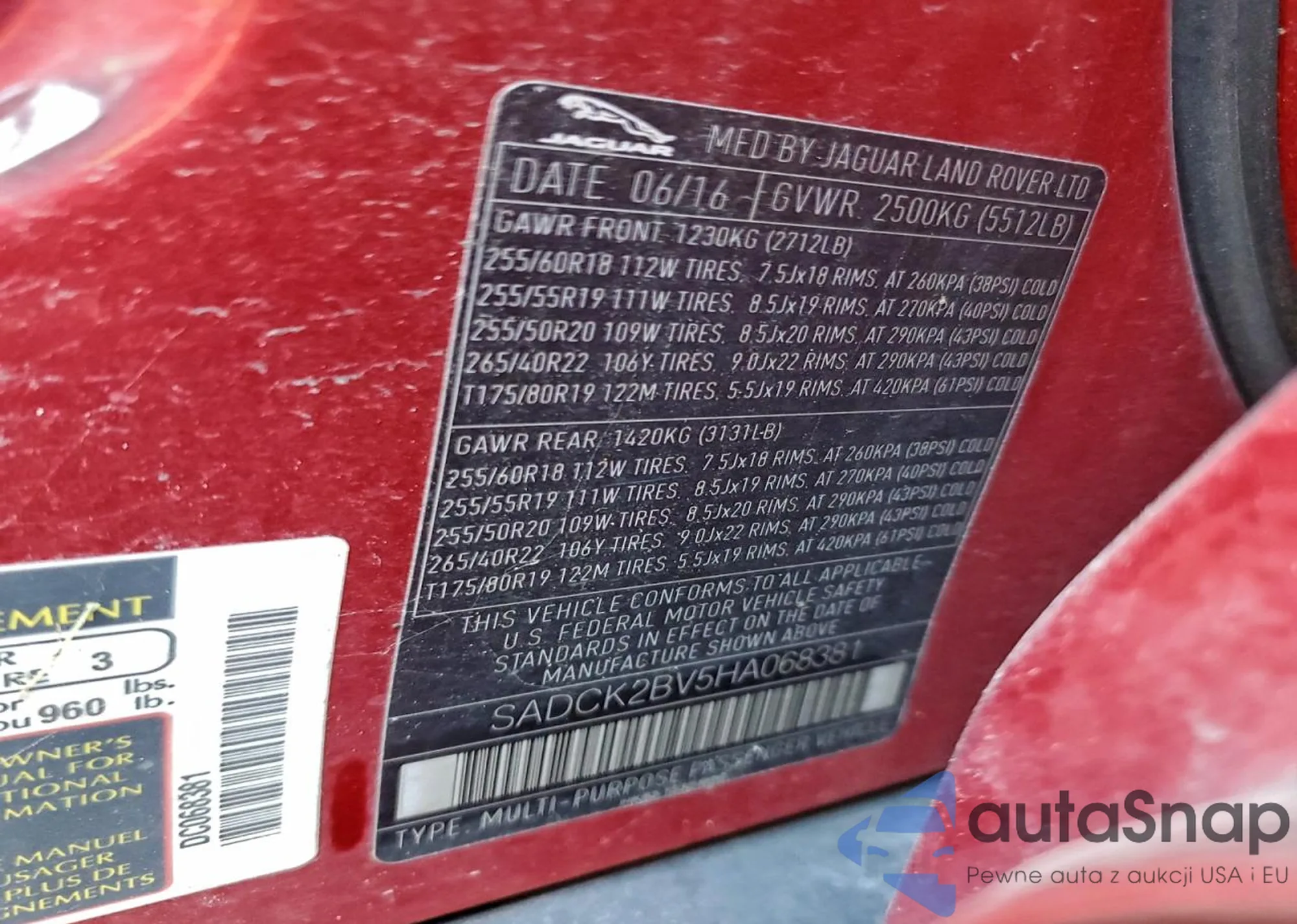 Jaguar F-Pace 2017 – История автомобиля (продан на COPART)