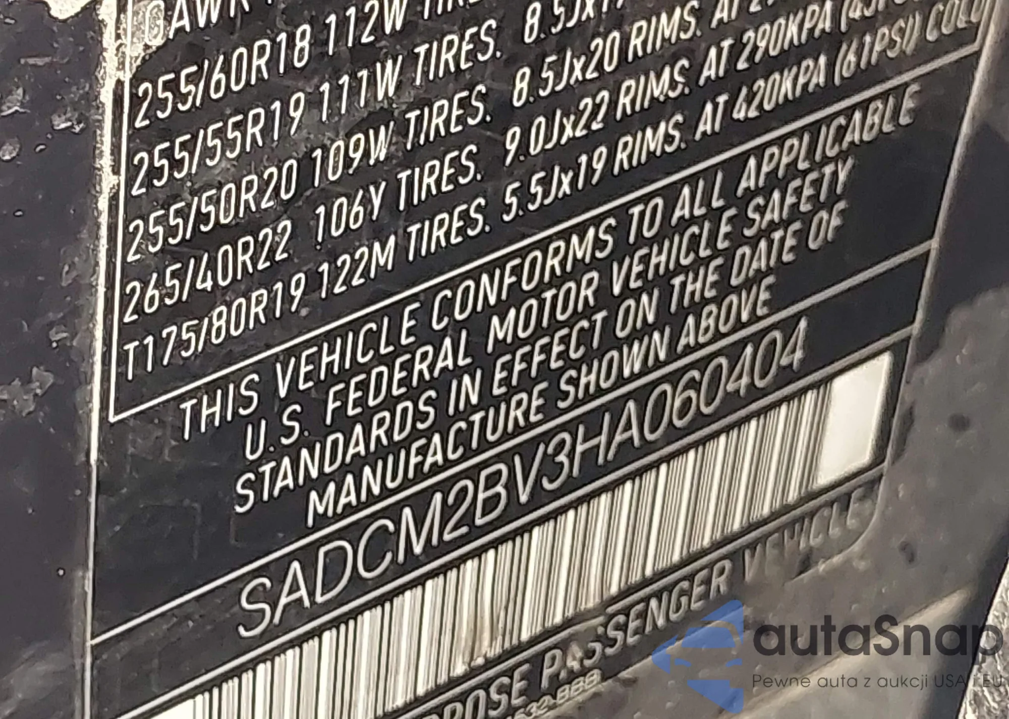 • VIN: SADCM2BV3HA060404