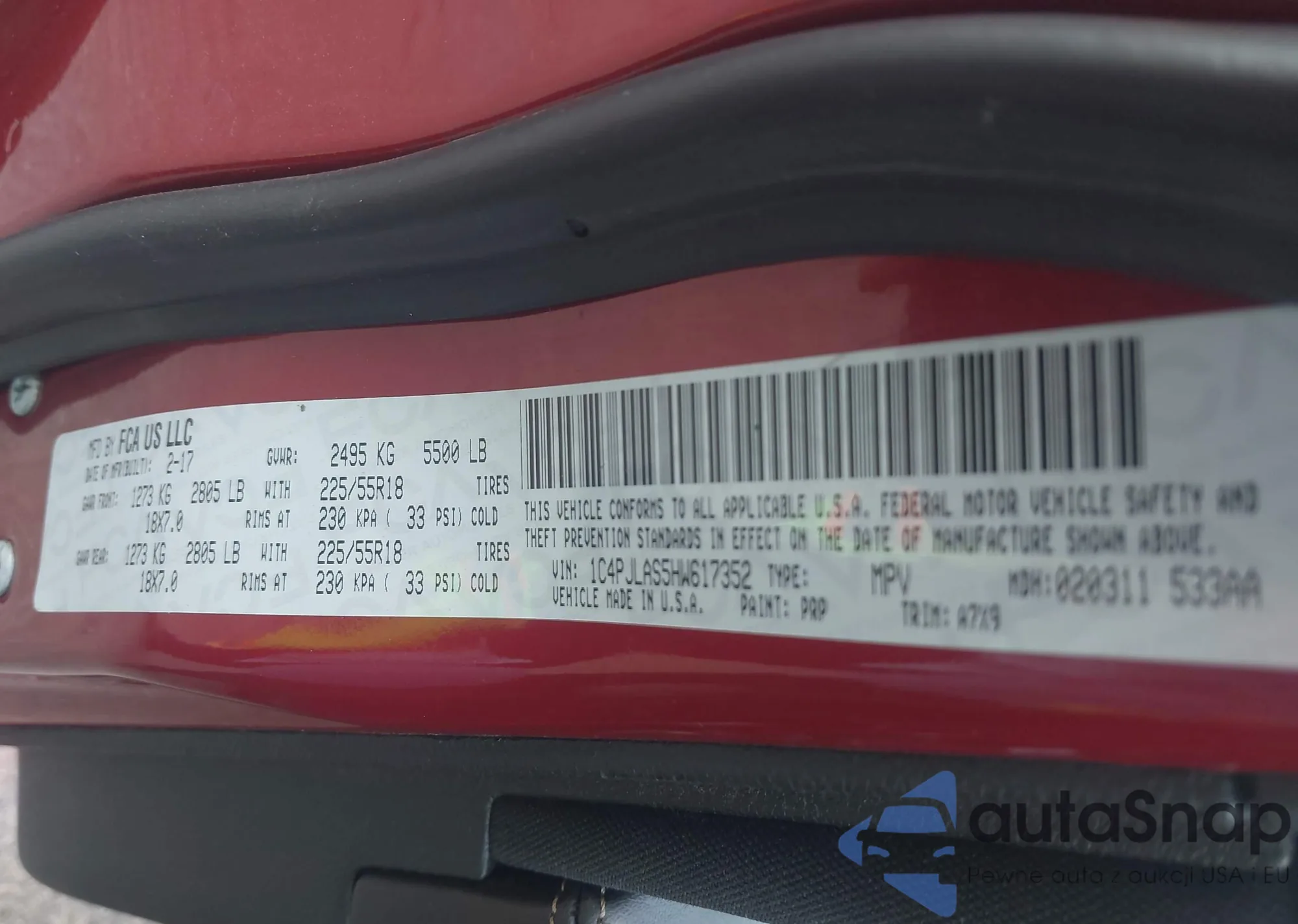 • VIN: 1C4PJLAS5HW617352