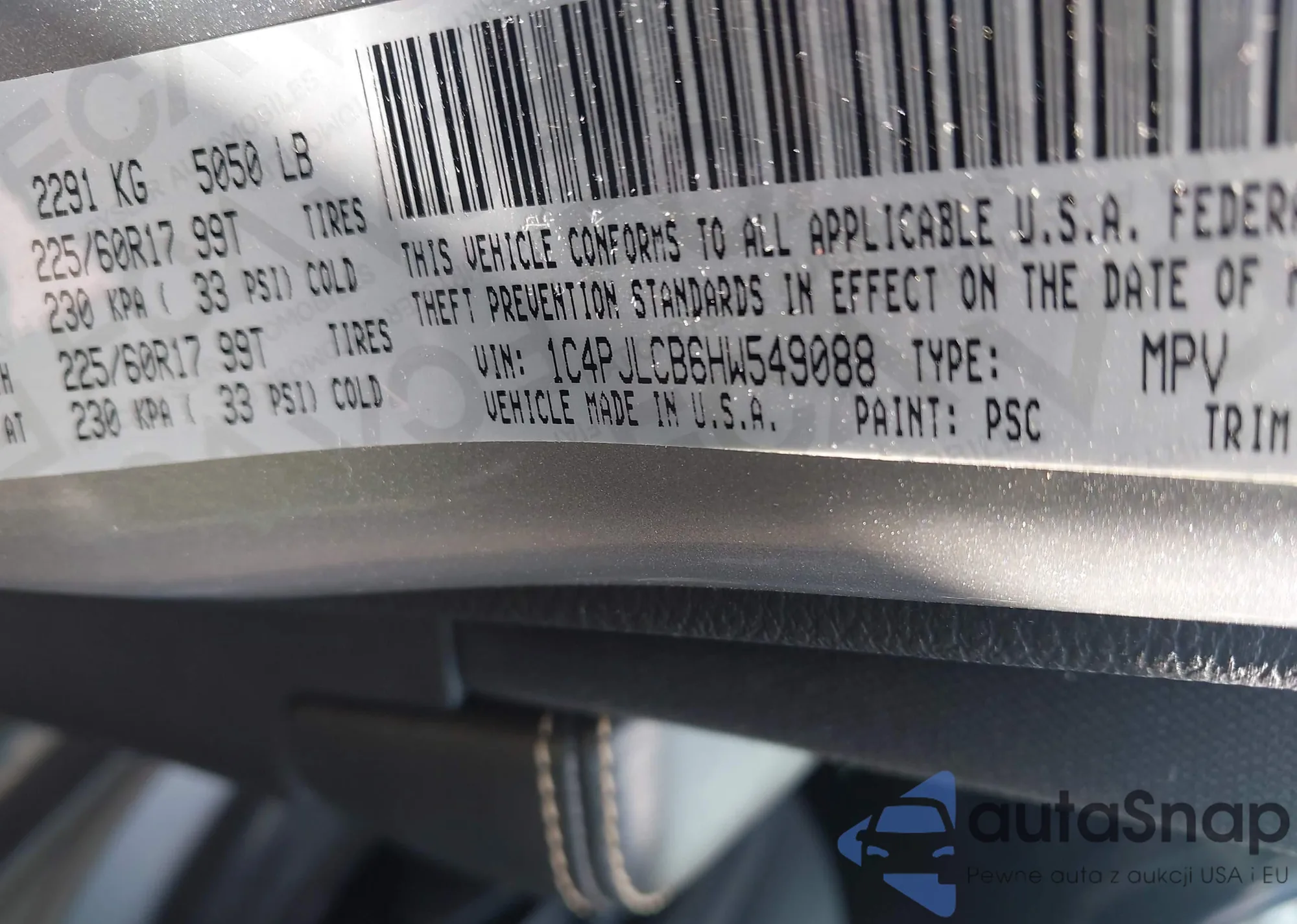 VIN: 1C4PJLCB6HW549088