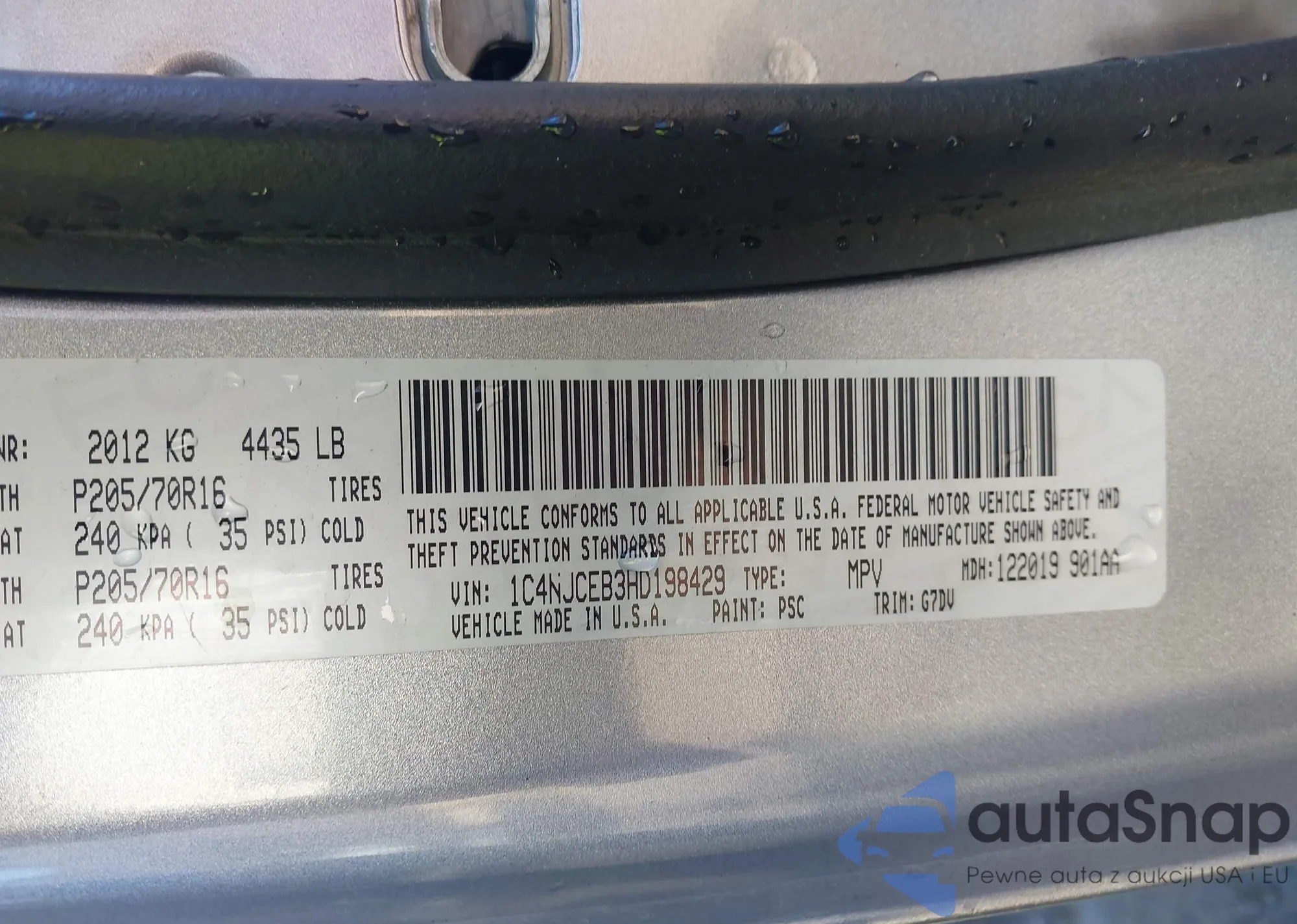 • VIN: 1C4NJCEB3HD198429