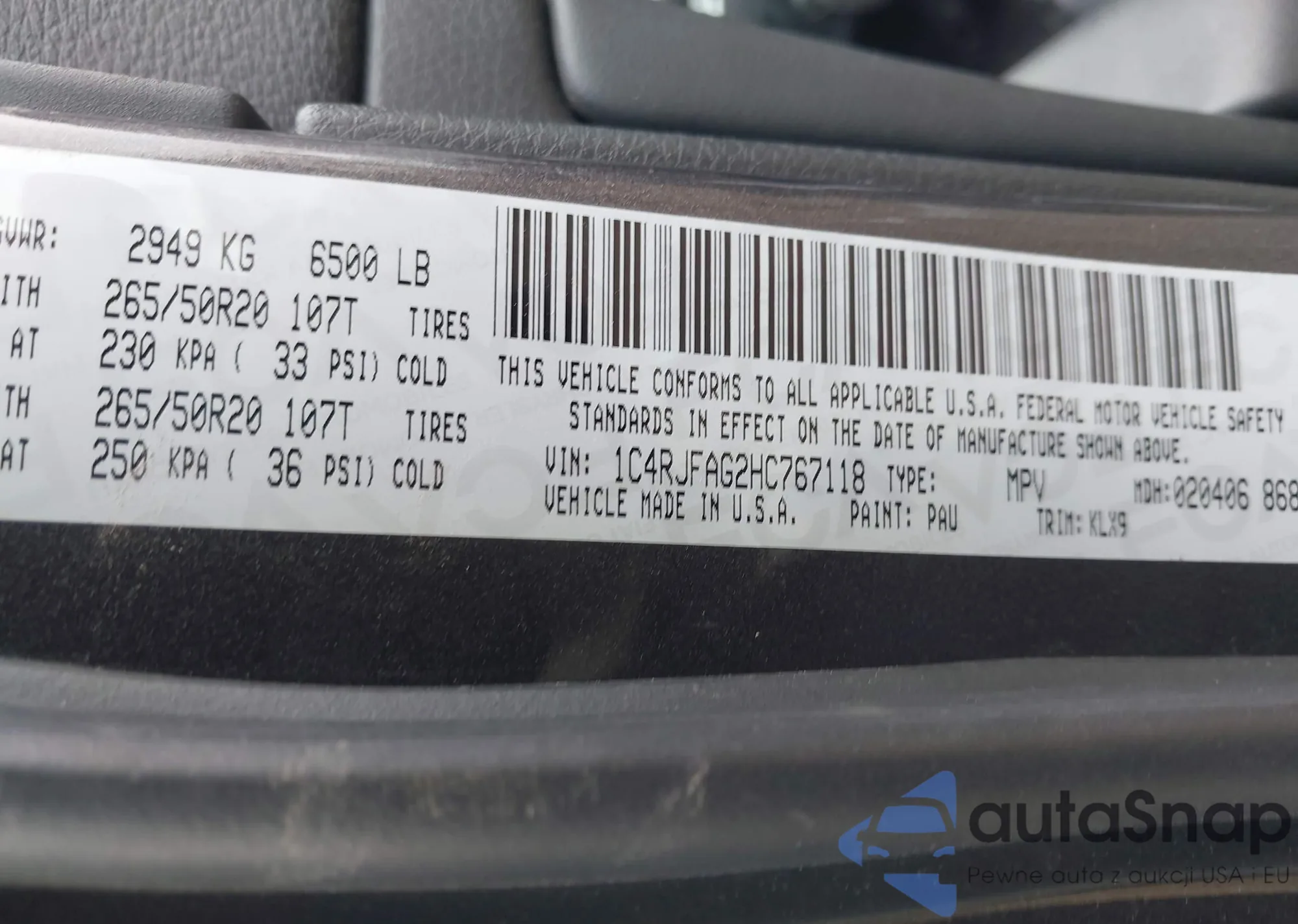 Автомобиль Jeep Grand Cherokee 2017 (VIN 1C4RJFAG2HC767118) продаётся непроверенным продавцом. Рекомендуем проверить отчет Carfax и подтвердить возможность регистрации перед покупкой.