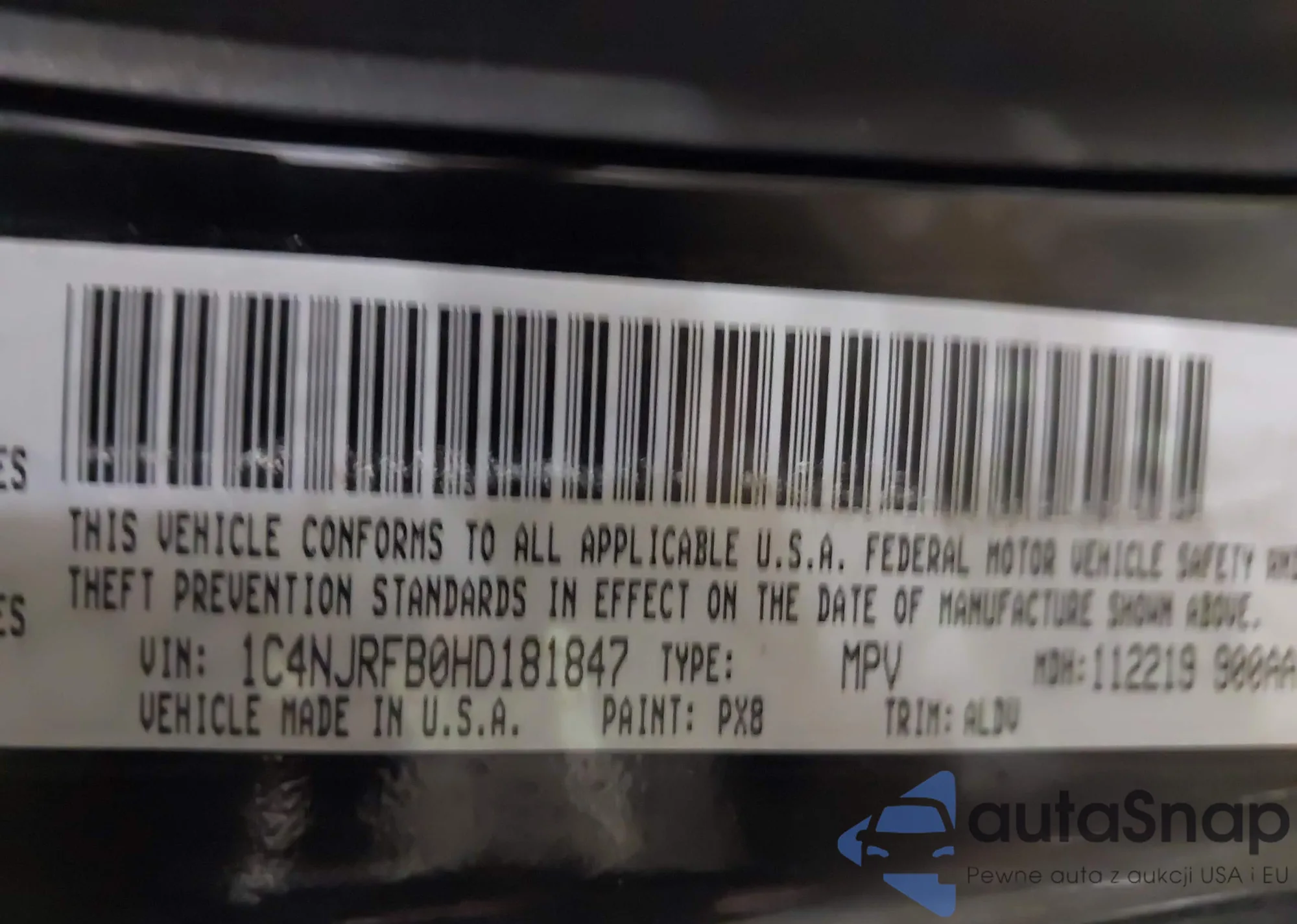 Автомобиль Jeep Liberty (Patriot) 2017 (VIN 1C4NJRFB0HD181847) ранее не участвовал в торгах. Документы чистые, пробег соответствует или ниже среднего по рынку. Продаётся страховой компанией — рекомендуем покупку. Доставка в порт займет около 6–8 недель.