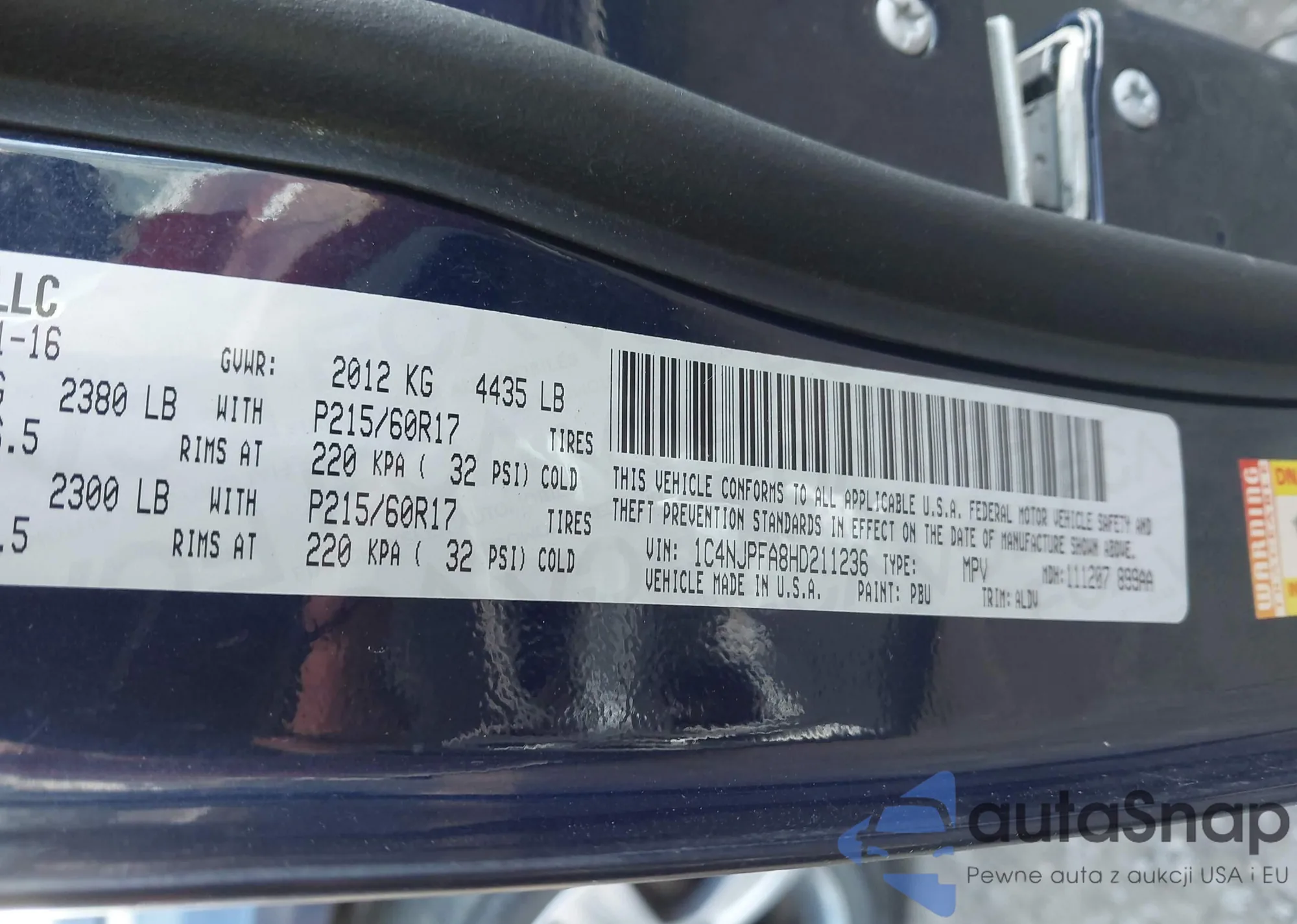 Автомобиль Jeep Liberty (Patriot) 2017 (VIN 1C4NJPFA8HD211236) ранее не участвовал в торгах. Документы чистые, пробег соответствует или ниже среднего по рынку. Продаётся страховой компанией — рекомендуем покупку. Доставка в порт займет около 6–8 недель.