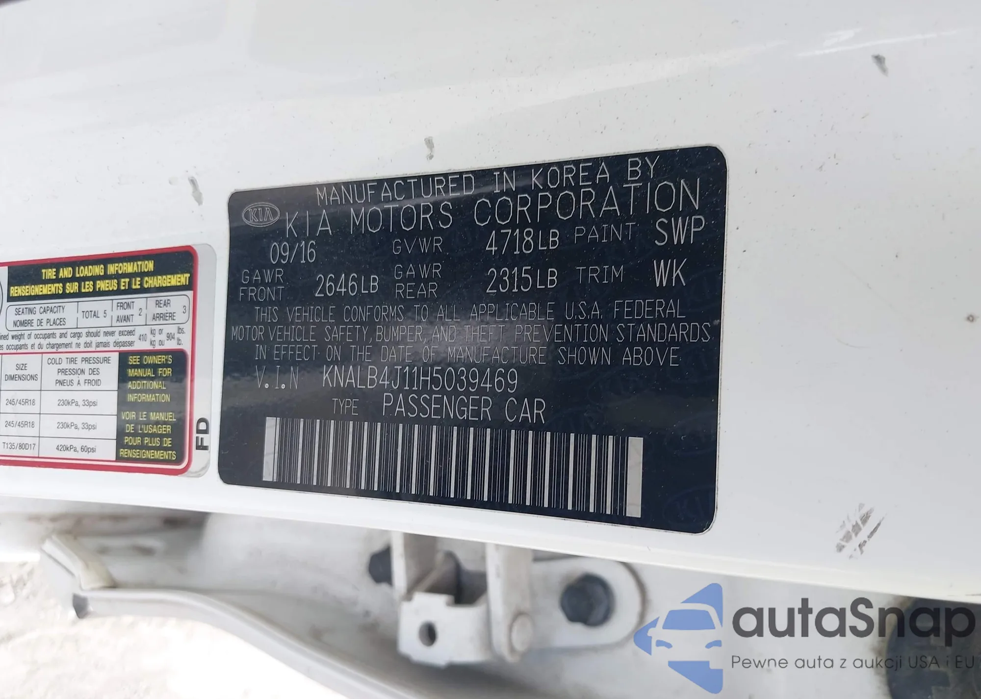VIN: KNALB4J11H5039469