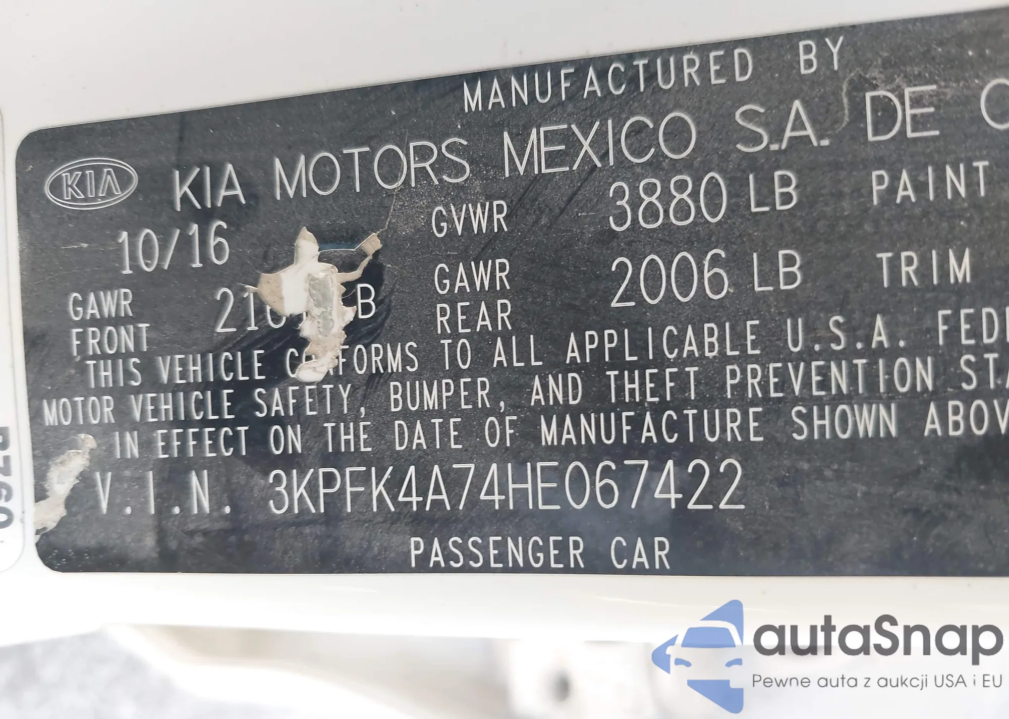 VIN: 3KPFK4A74HE067422