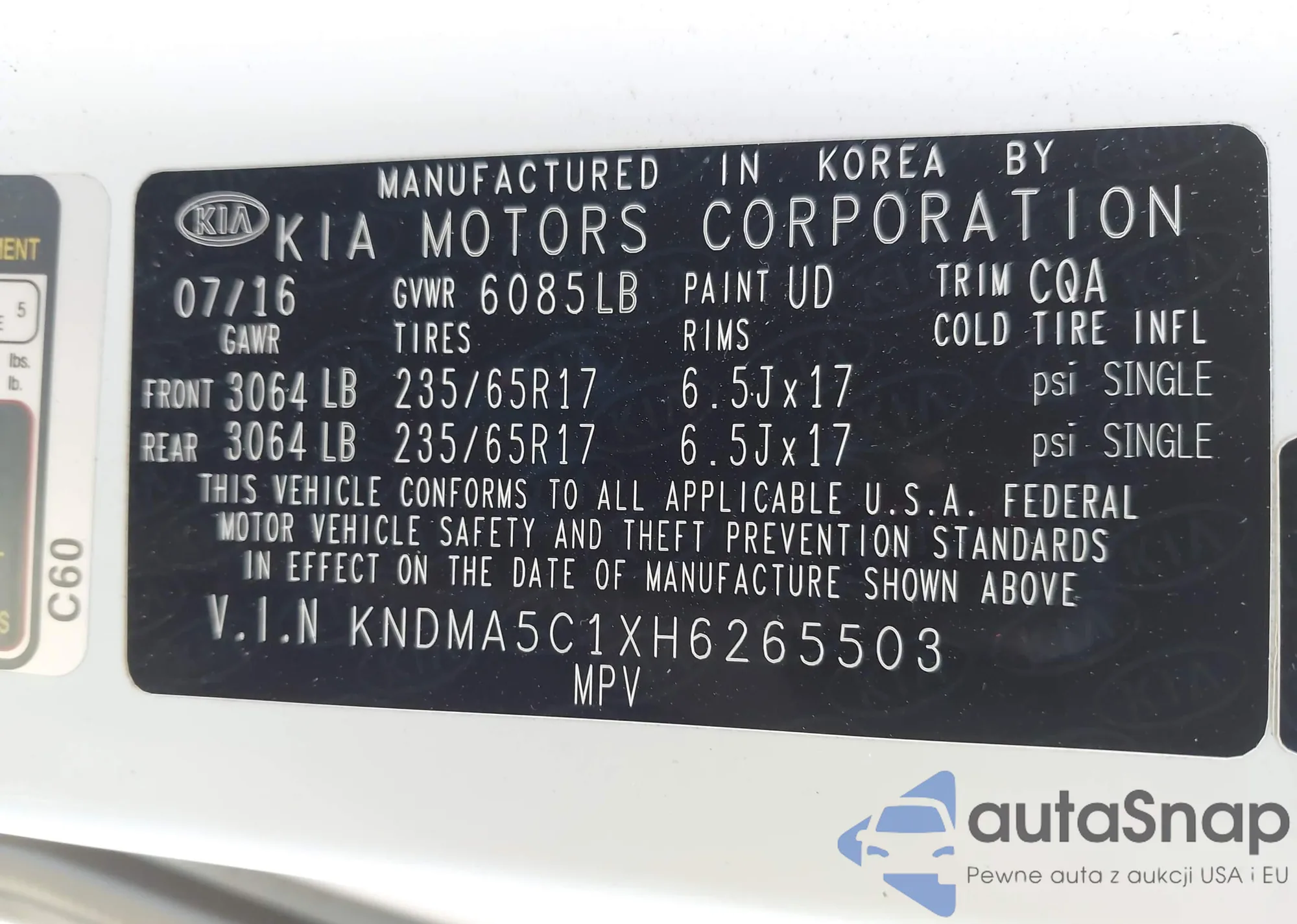 • VIN: KNDMA5C1XH6265503