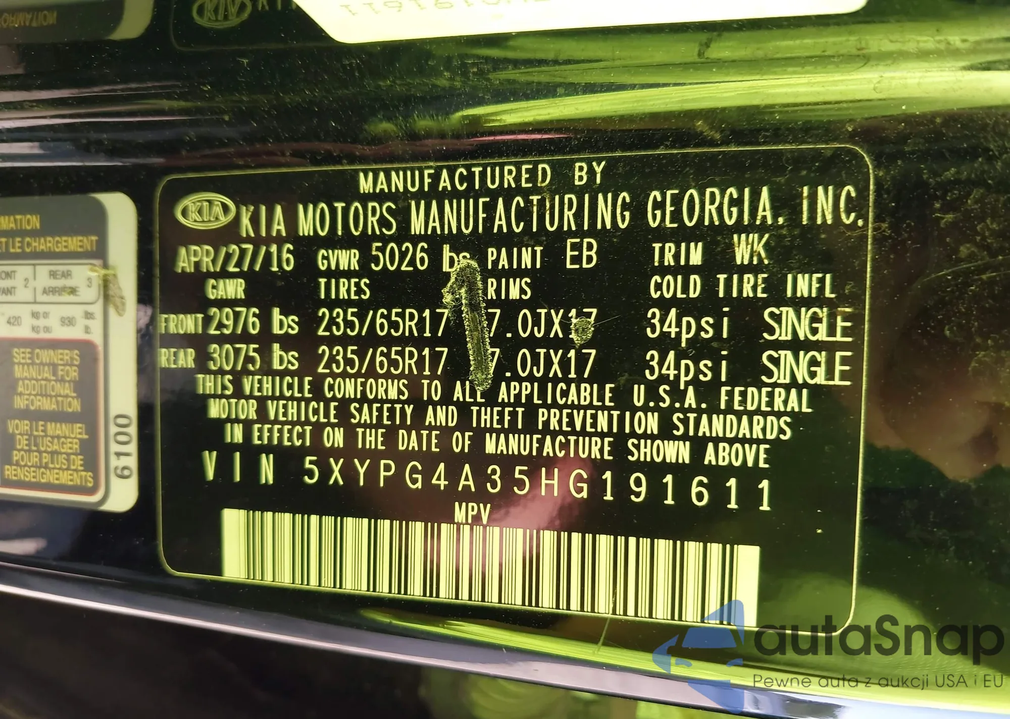 Автомобиль Kia Sorento 2017 (VIN 5XYPG4A35HG191611) ранее не участвовал в торгах. Документы чистые, пробег соответствует или ниже среднего по рынку. Продаётся страховой компанией — рекомендуем покупку. Доставка в порт займет около 6–8 недель.