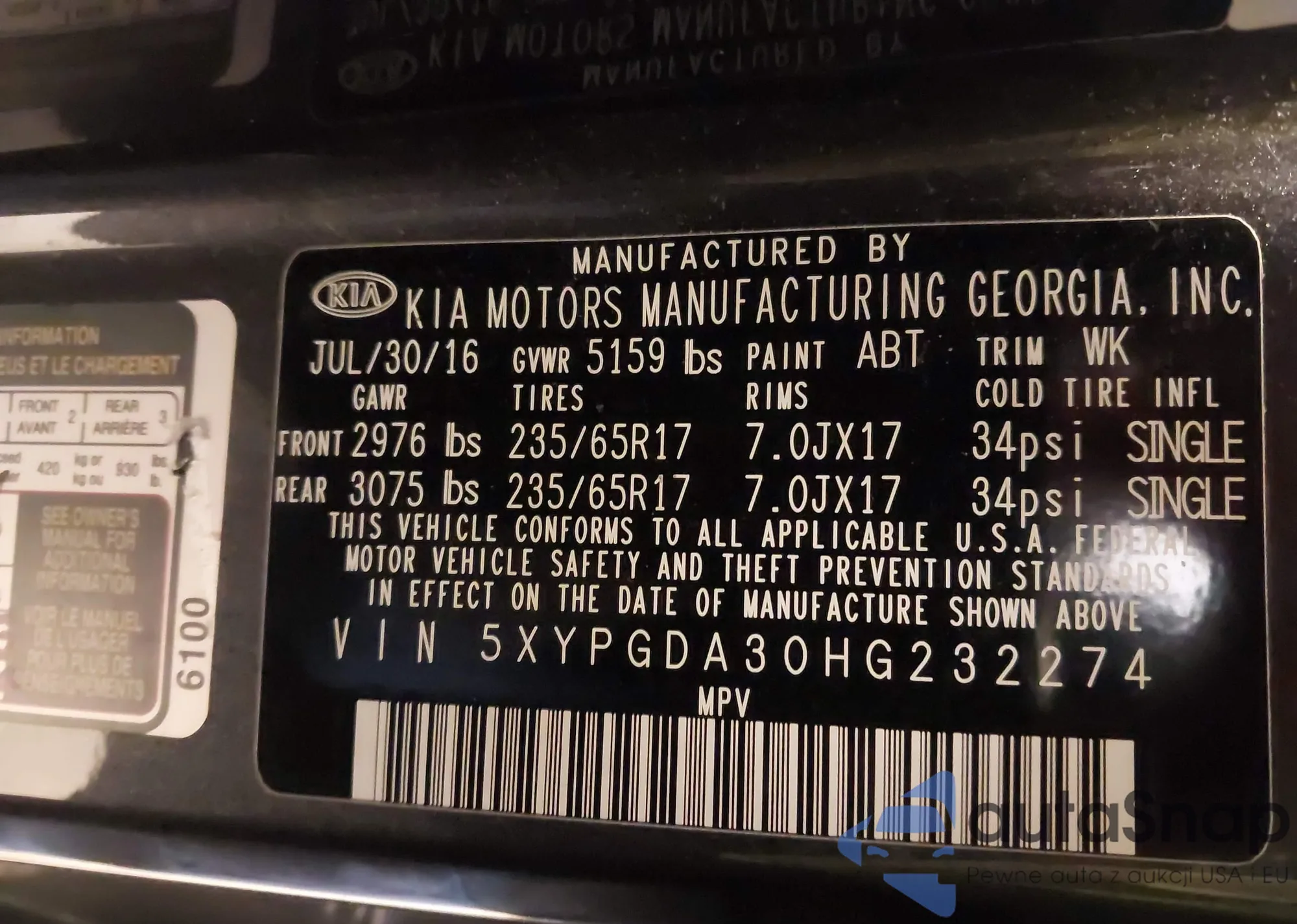 VIN: 5XYPGDA30HG232274