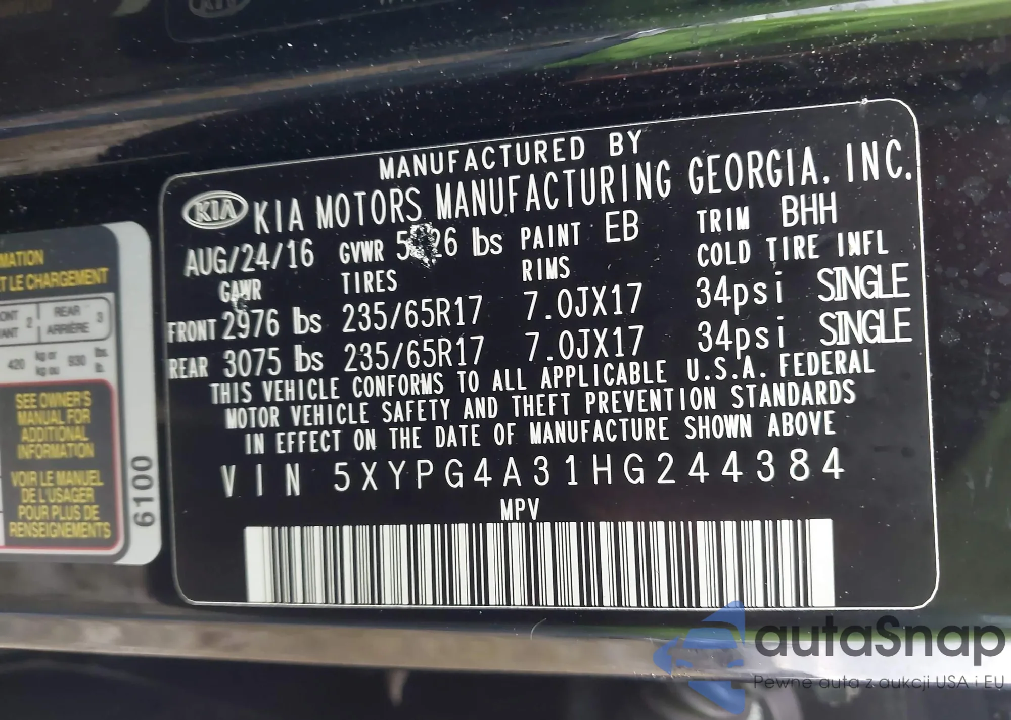 • VIN: 5XYPG4A31HG244384