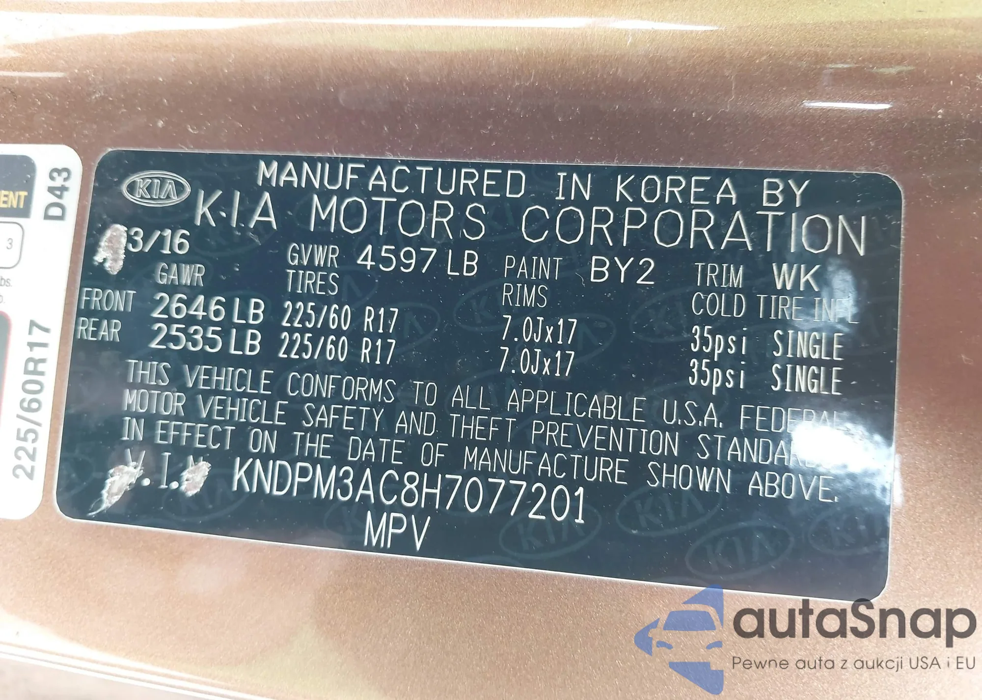 Автомобиль Kia Sportage 2017 (VIN KNDPM3AC8H7077201) ранее не участвовал в торгах. Документы чистые, пробег соответствует или ниже среднего по рынку. Продаётся страховой компанией — рекомендуем покупку. Доставка в порт займет около 6–8 недель.