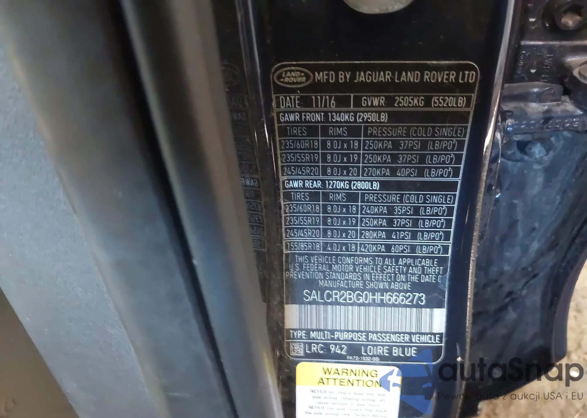 • VIN: SALCR2BG0HH666273