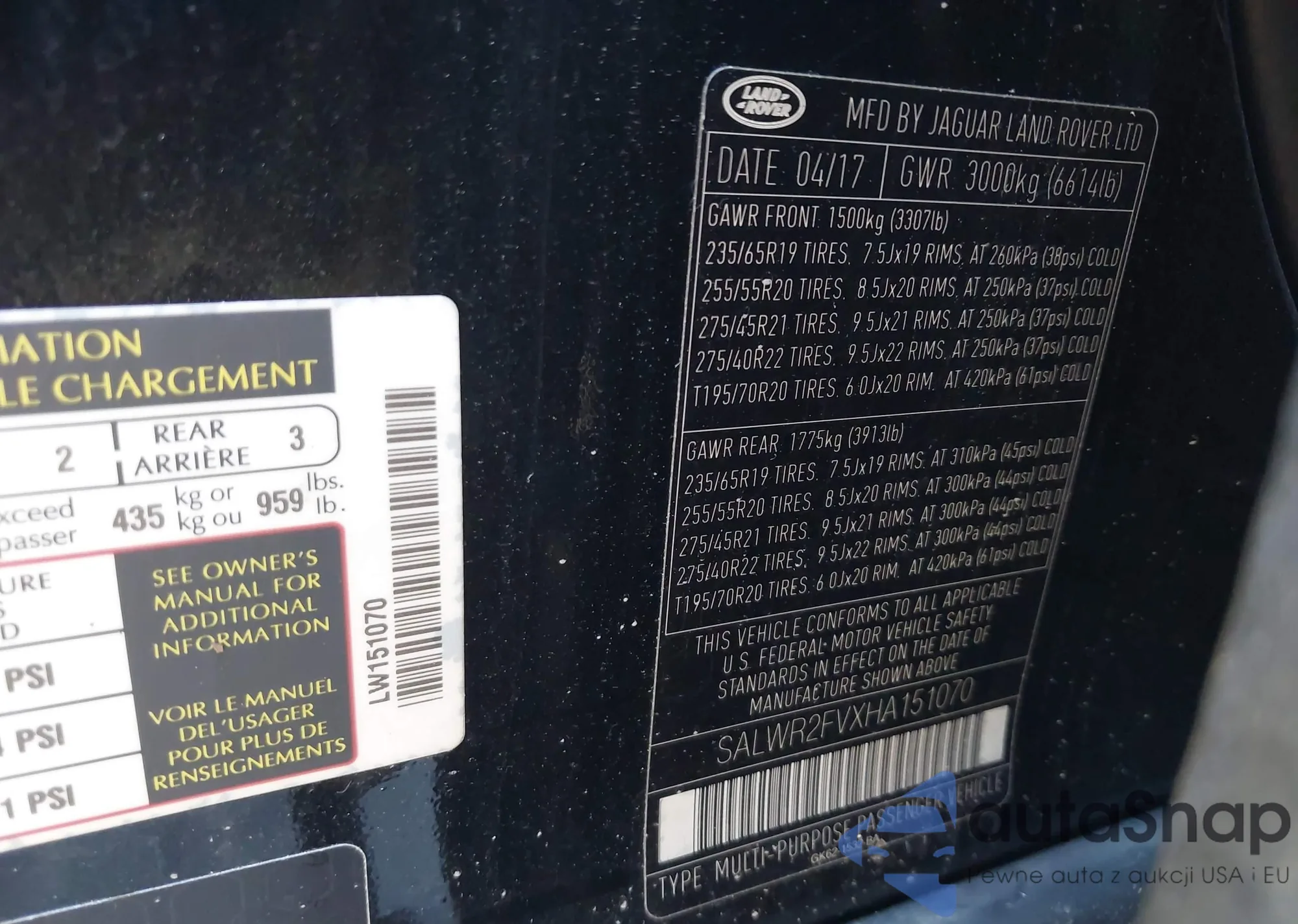 • VIN: SALWR2FVXHA151070