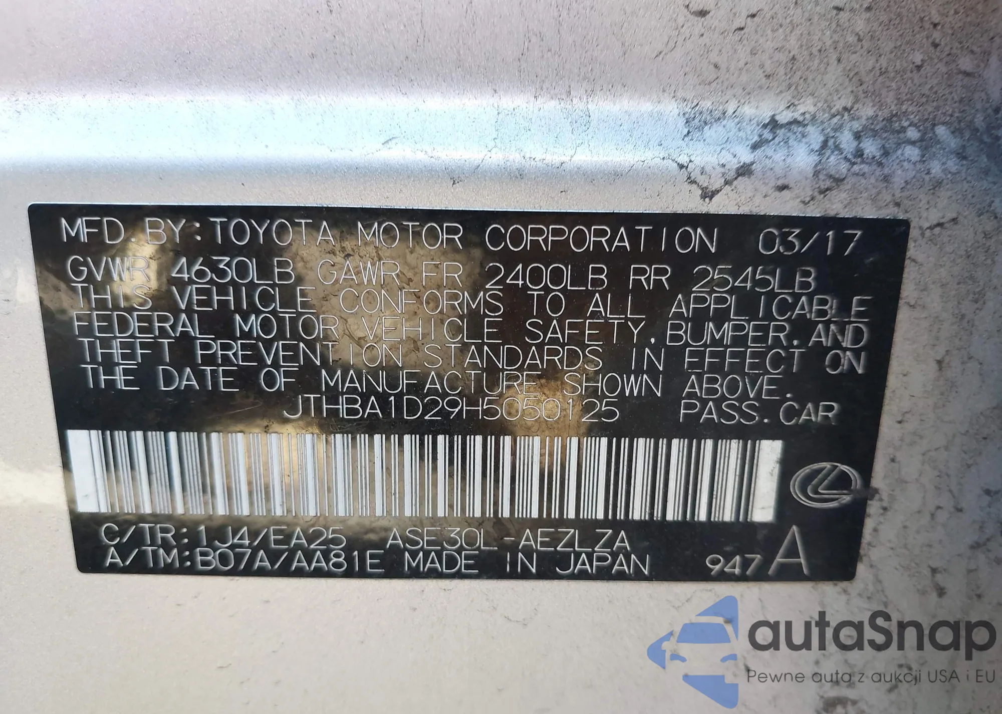 JTHBA1D29H5050125 IAAI