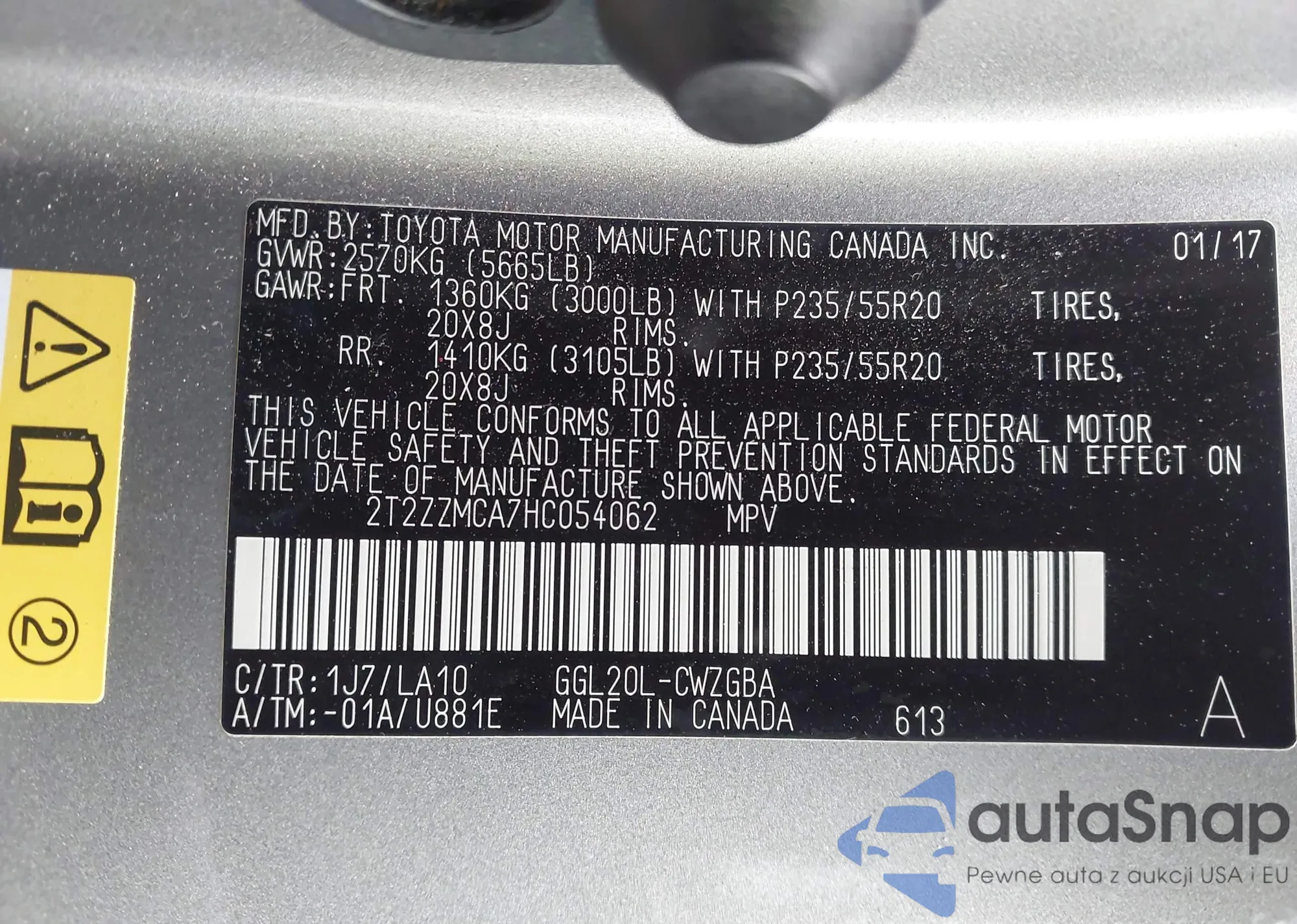 VIN: 2T2ZZMCA7HC054062