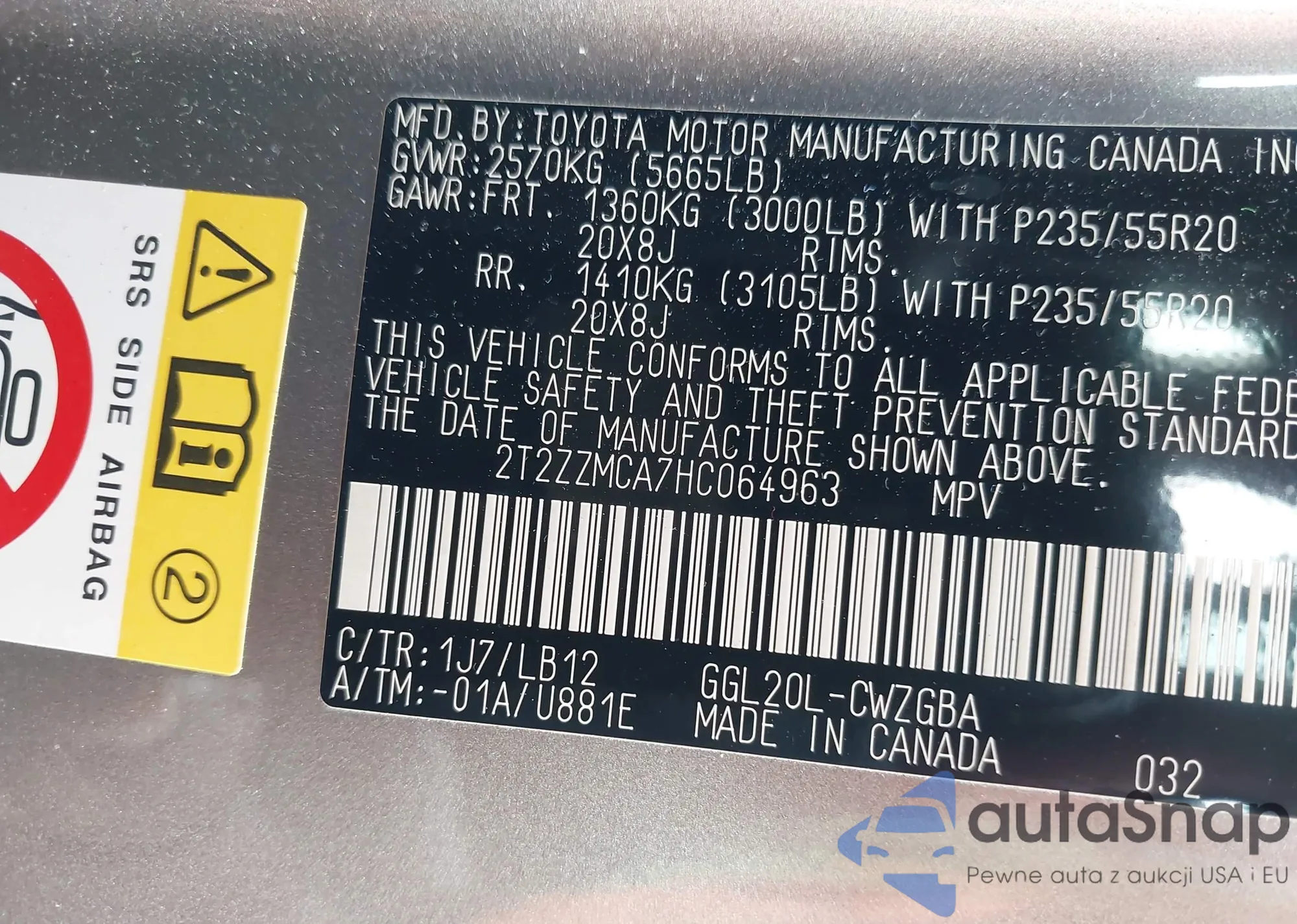 • VIN: 2T2ZZMCA7HC064963