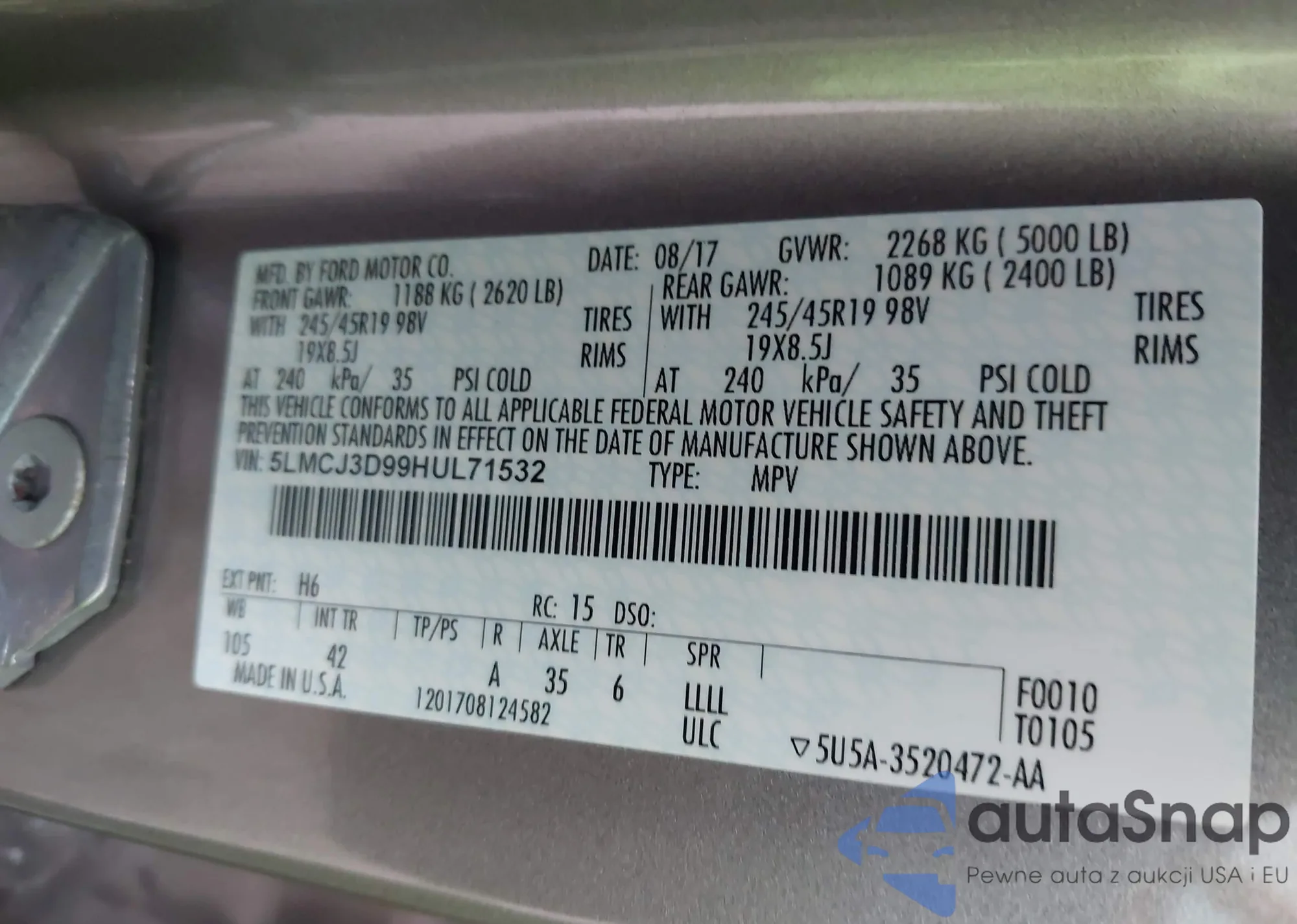 VIN: 5LMCJ3D99HUL71532