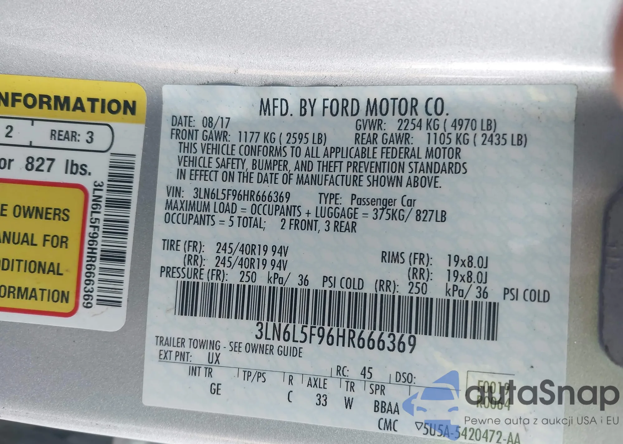 Автомобиль Lincoln MKZ 2017 (VIN 3LN6L5F96HR666369) ранее не участвовал в торгах. Документы чистые, пробег соответствует или ниже среднего по рынку. Продаётся страховой компанией — рекомендуем покупку. Доставка в порт займет около 6–8 недель.