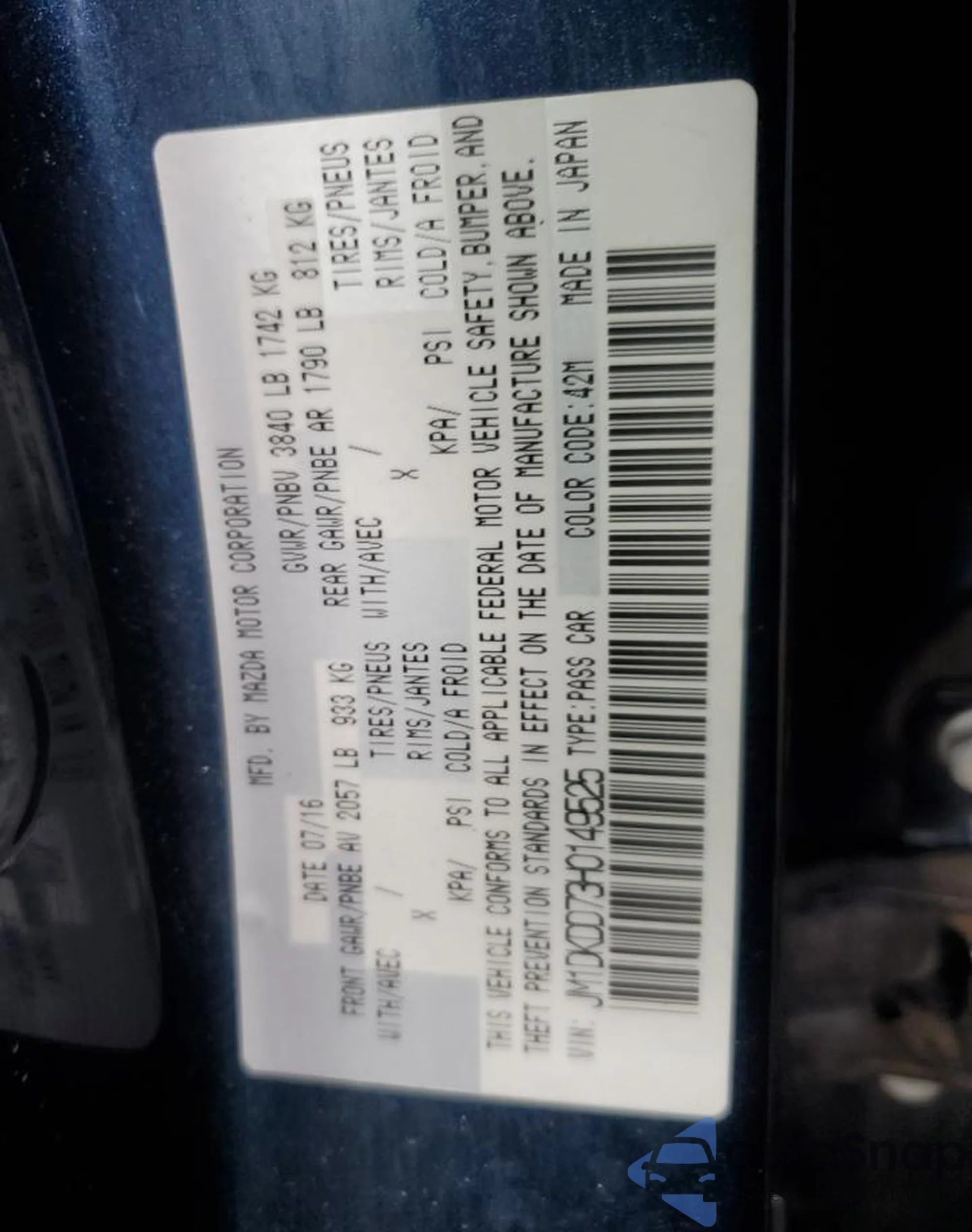VIN: JM1DKDD73H0149525