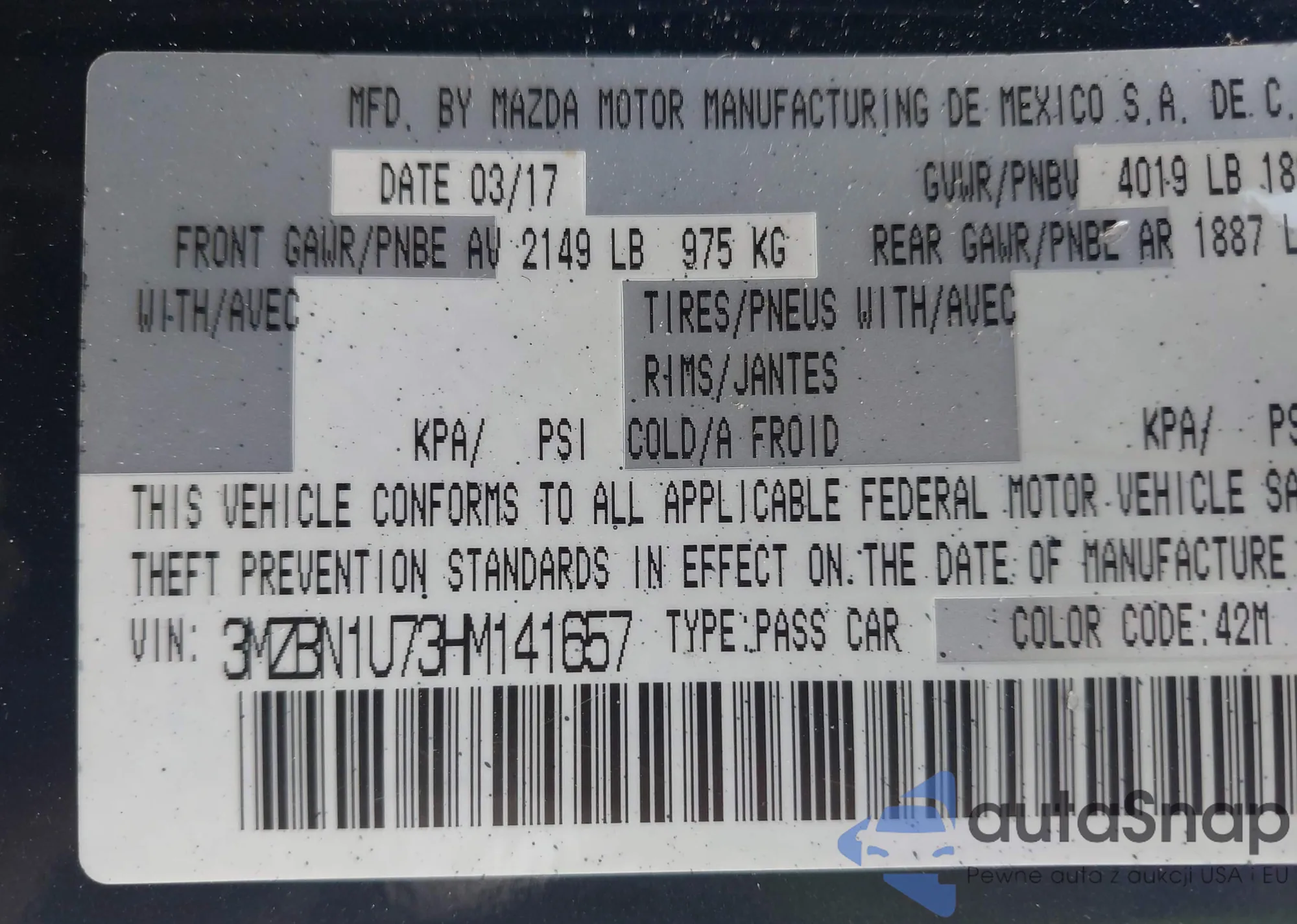 VIN: 3MZBN1U73HM141657