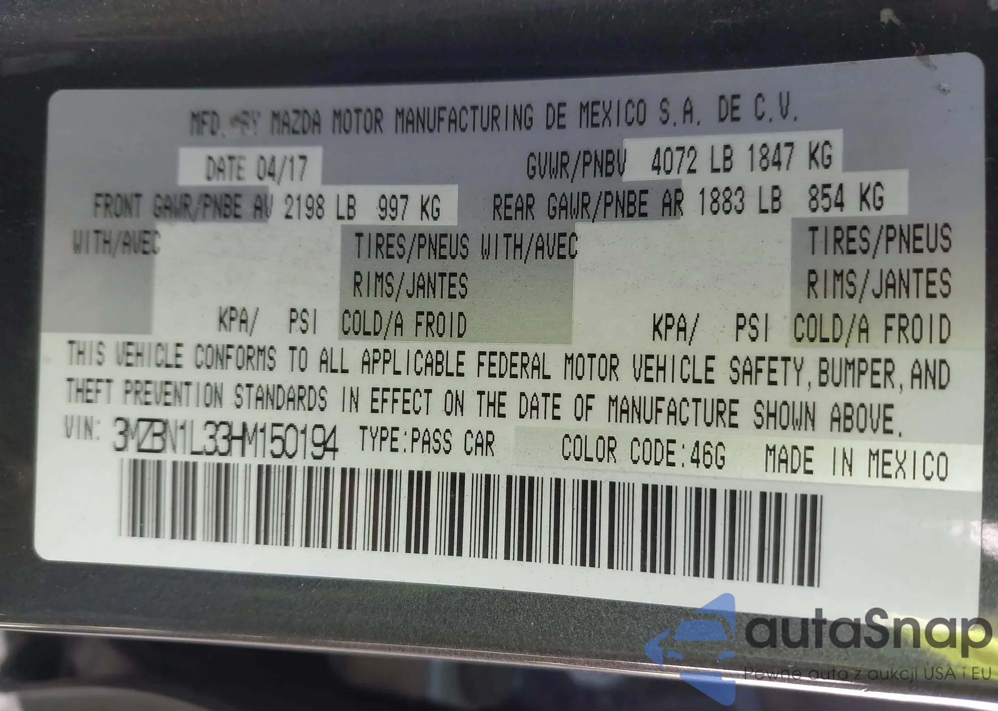 VIN: 3MZBN1L33HM150194