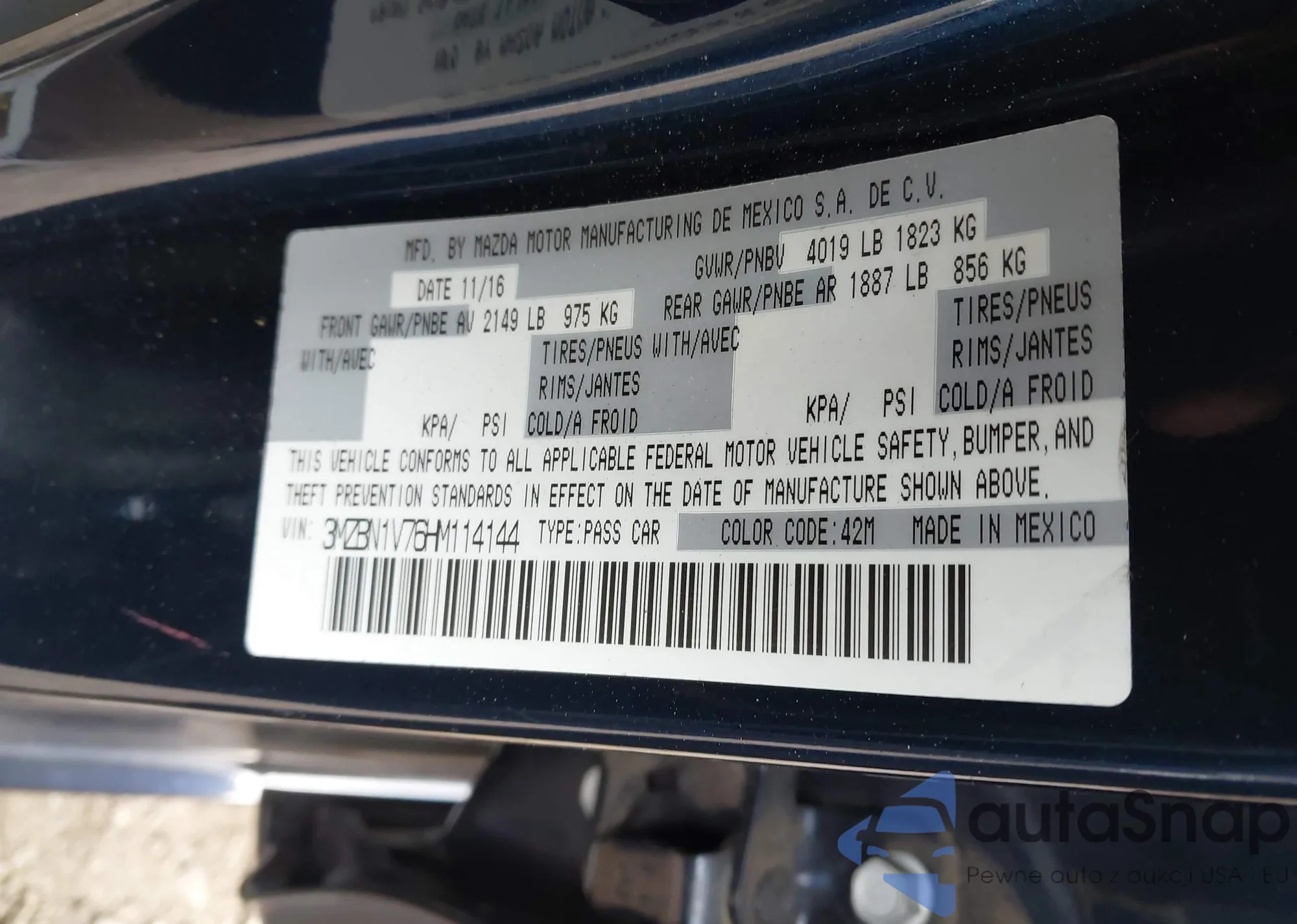 VIN: 3MZBN1V76HM114144