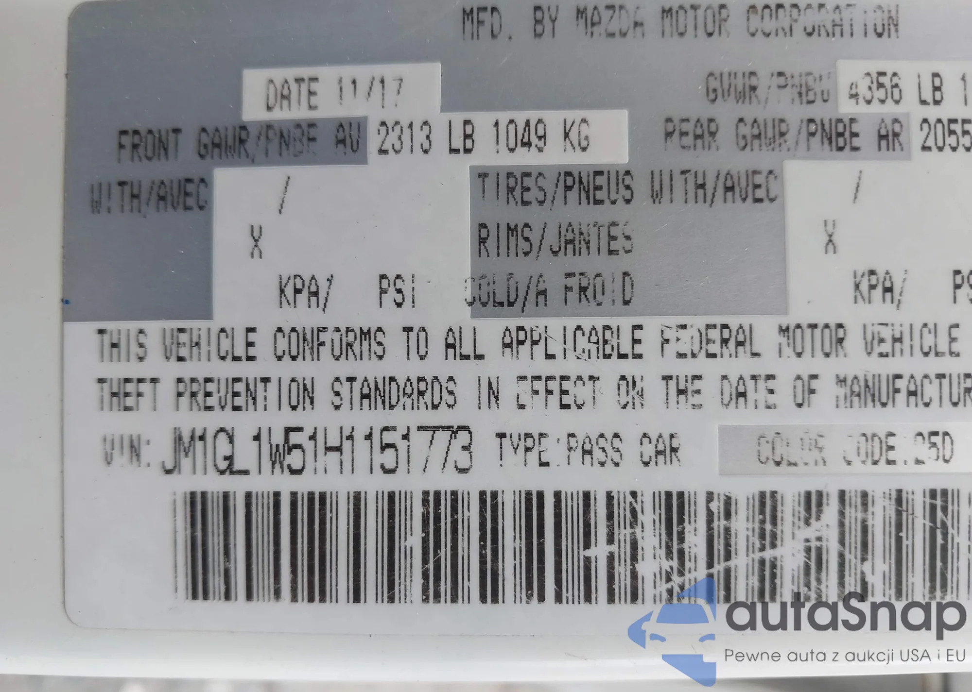VIN: JM1GL1W51H1151773