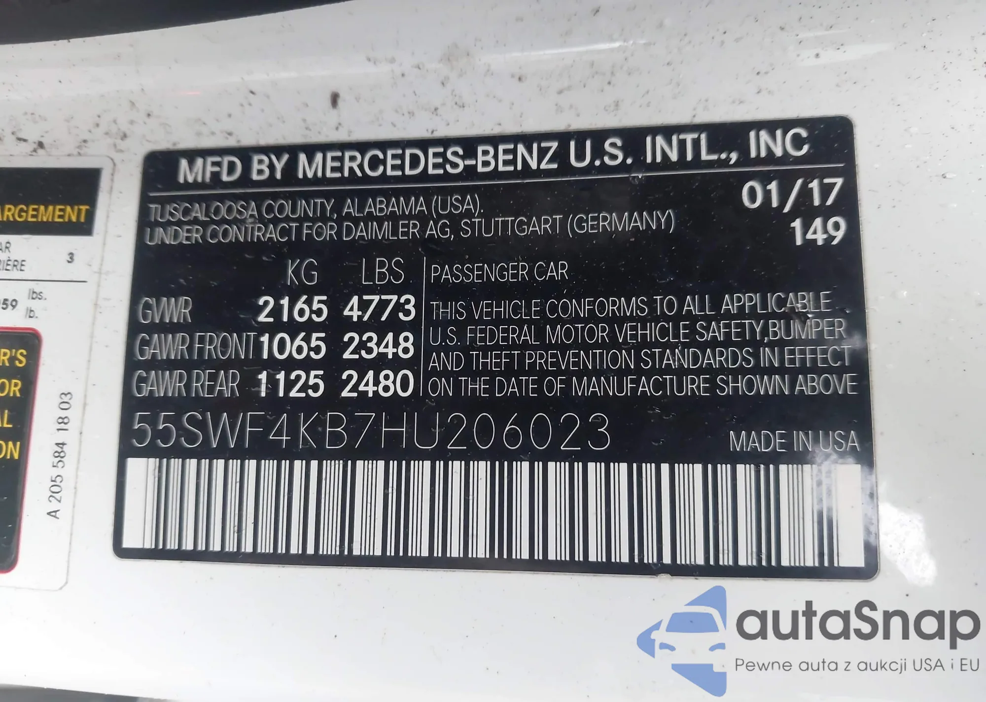 Автомобиль Mercedes-Benz C-klasse 2017 (VIN 55SWF4KB7HU206023) ранее не участвовал в торгах. Документы чистые, пробег соответствует или ниже среднего по рынку. Продаётся страховой компанией — рекомендуем покупку. Доставка в порт займет около 6–8 недель.