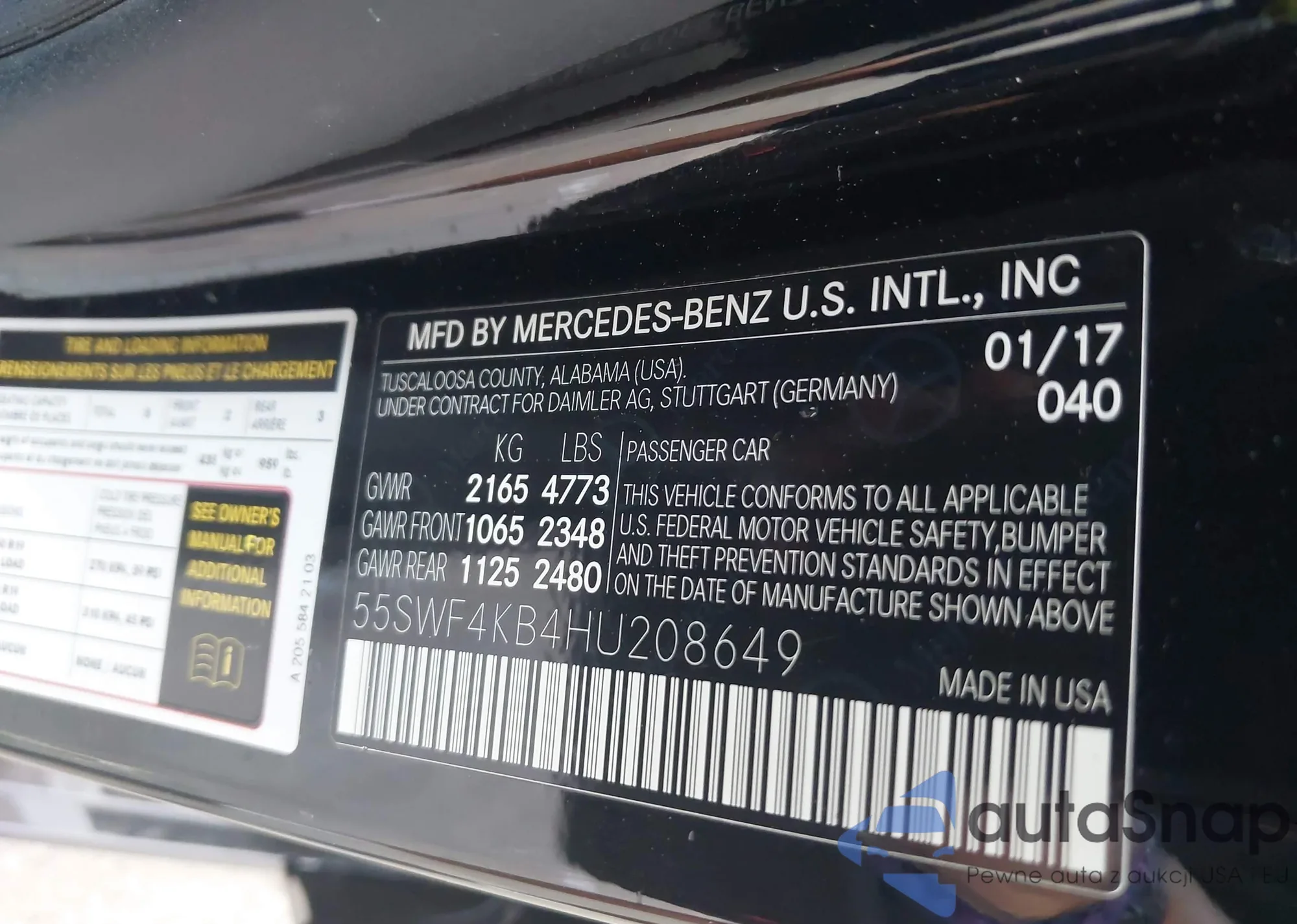 VIN: 55SWF4KB4HU208649