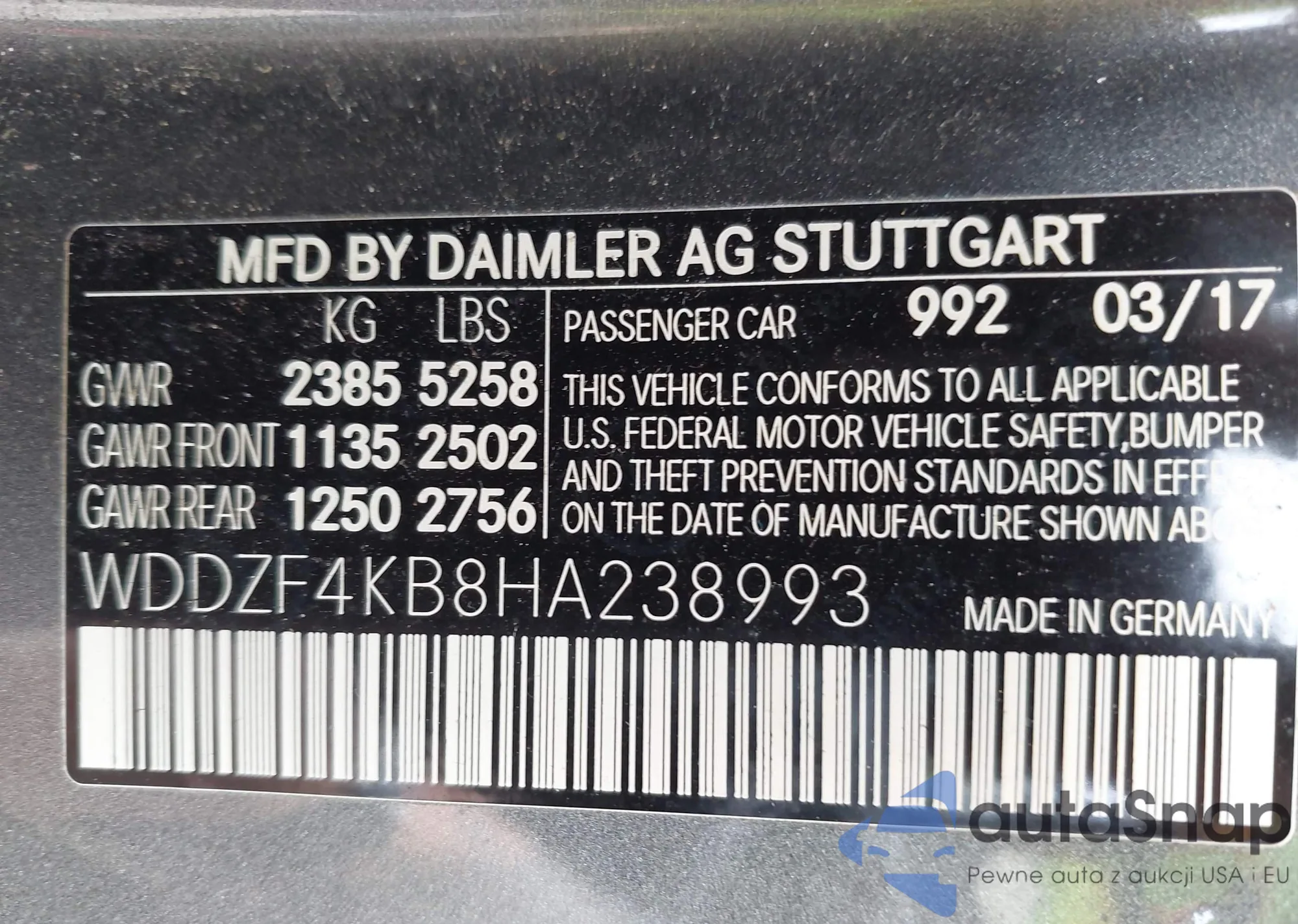 Автомобиль Mercedes-Benz E-klasse 2017 (VIN WDDZF4KB8HA238993) ранее не участвовал в торгах. Документы чистые, пробег соответствует или ниже среднего по рынку. Продаётся страховой компанией — рекомендуем покупку. Доставка в порт займет около 6–8 недель.