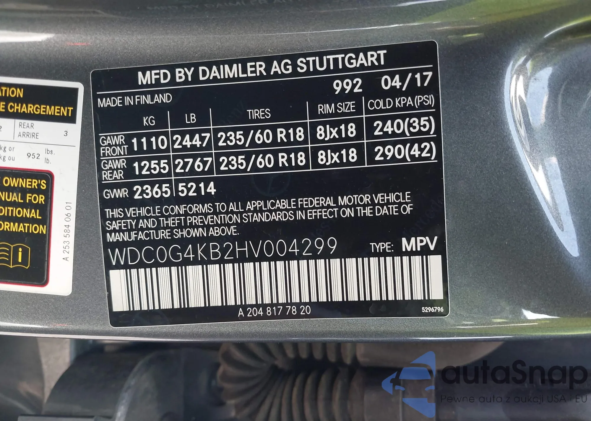 Автомобиль Mercedes-Benz GLC 2017 (VIN WDC0G4KB2HV004299) ранее не участвовал в торгах. Документы чистые, пробег соответствует или ниже среднего по рынку. Продаётся страховой компанией — рекомендуем покупку. Доставка в порт займет около 6–8 недель.