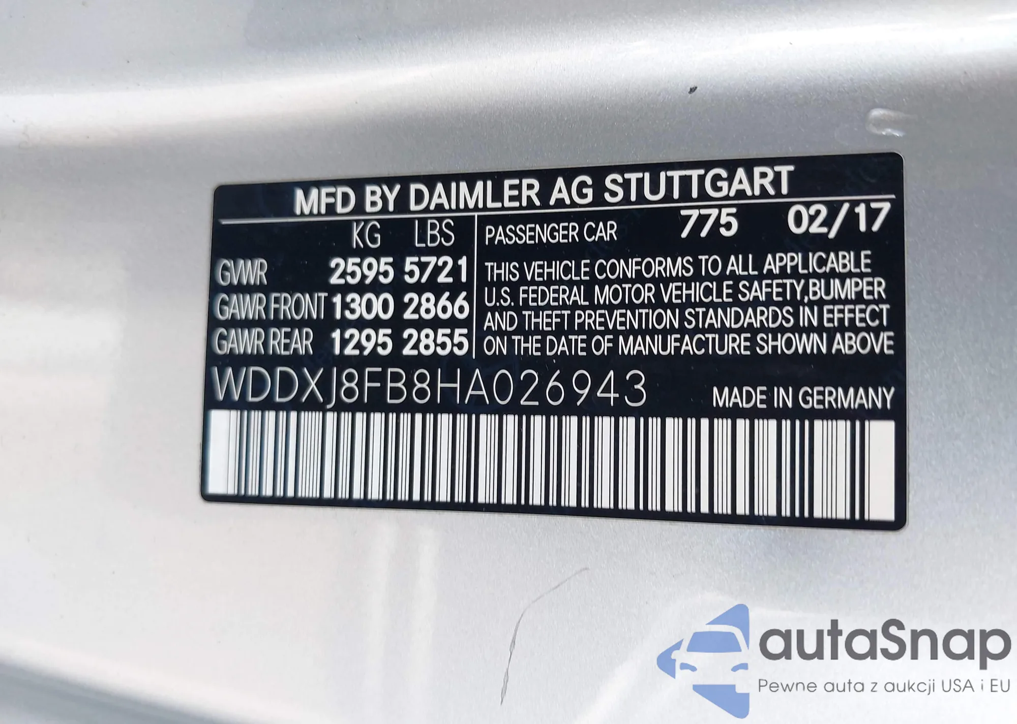 Автомобиль Mercedes-Benz S-klasse 2017 (VIN WDDXJ8FB8HA026943) имеет документы, препятствующие регистрации. Могут возникнуть сложности при экспорте и регистрации. Обратитесь к экспертам AutaSnap для поиска альтернатив.