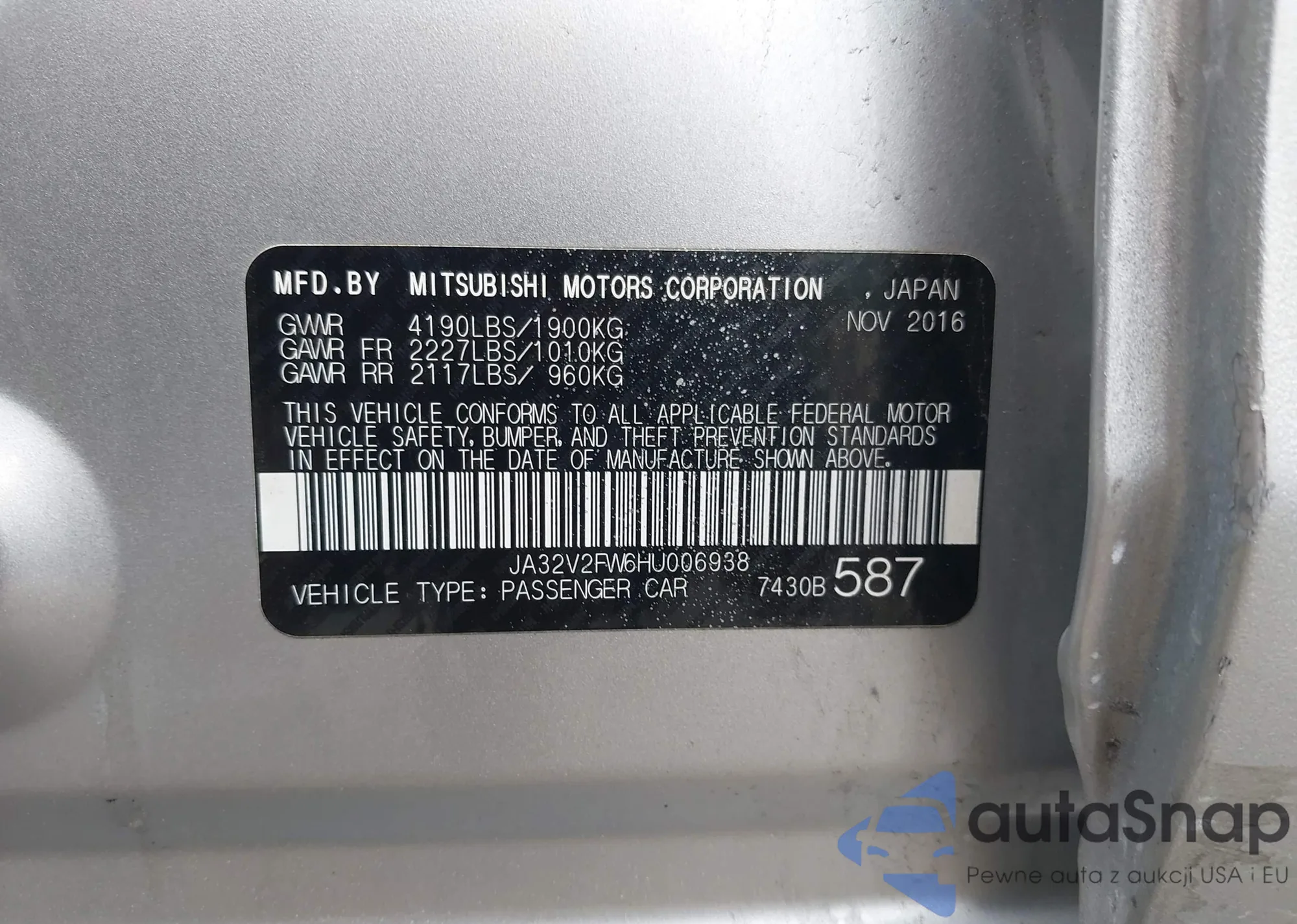 VIN: JA32V2FW6HU006938