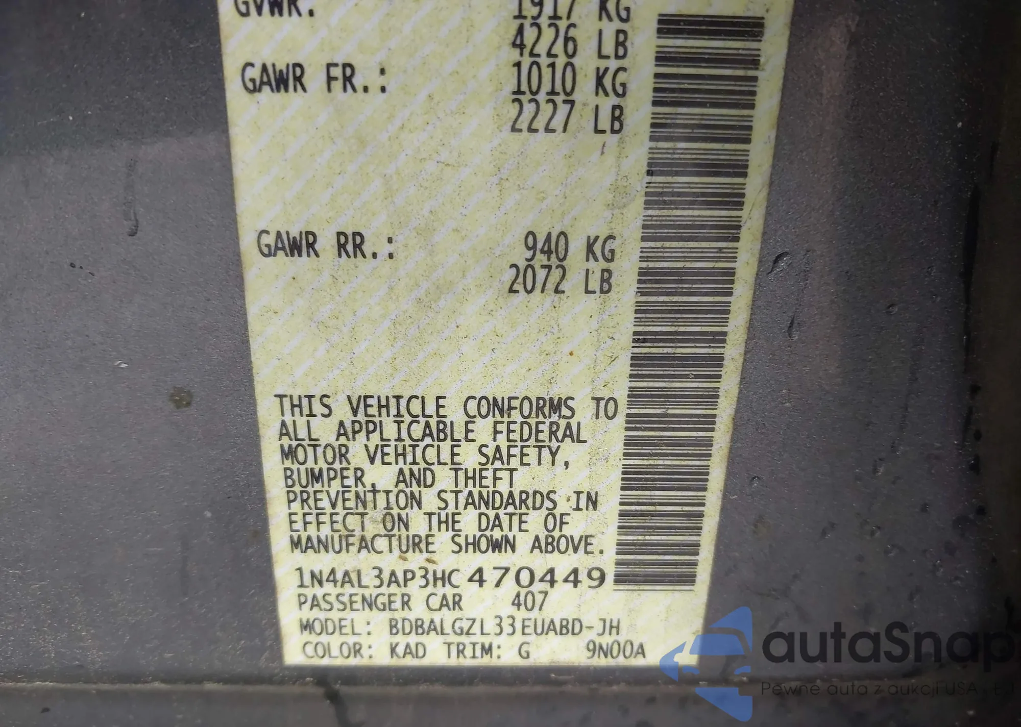 VIN: 1N4AL3AP3HC470449