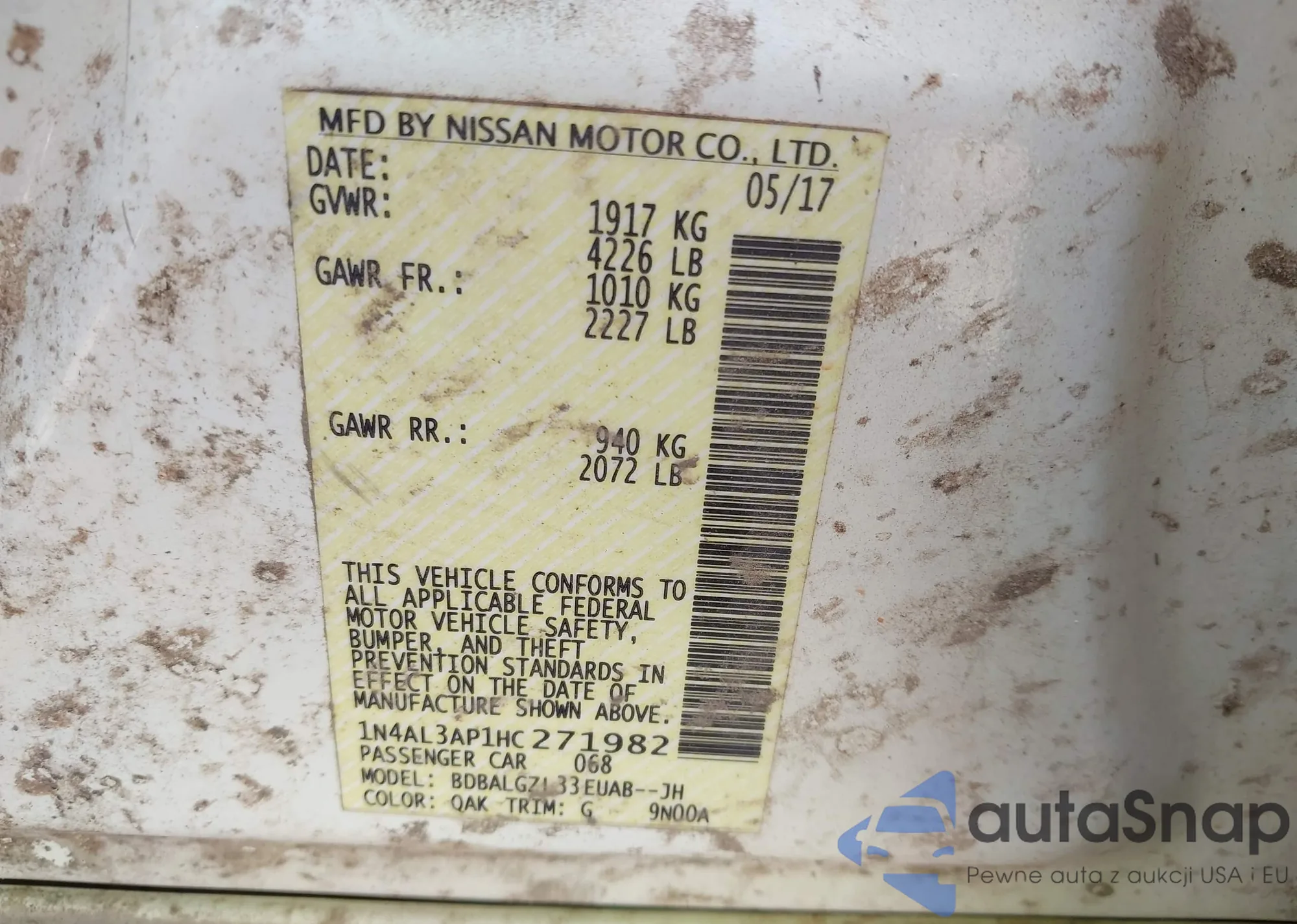 VIN: 1N4AL3AP1HC271982