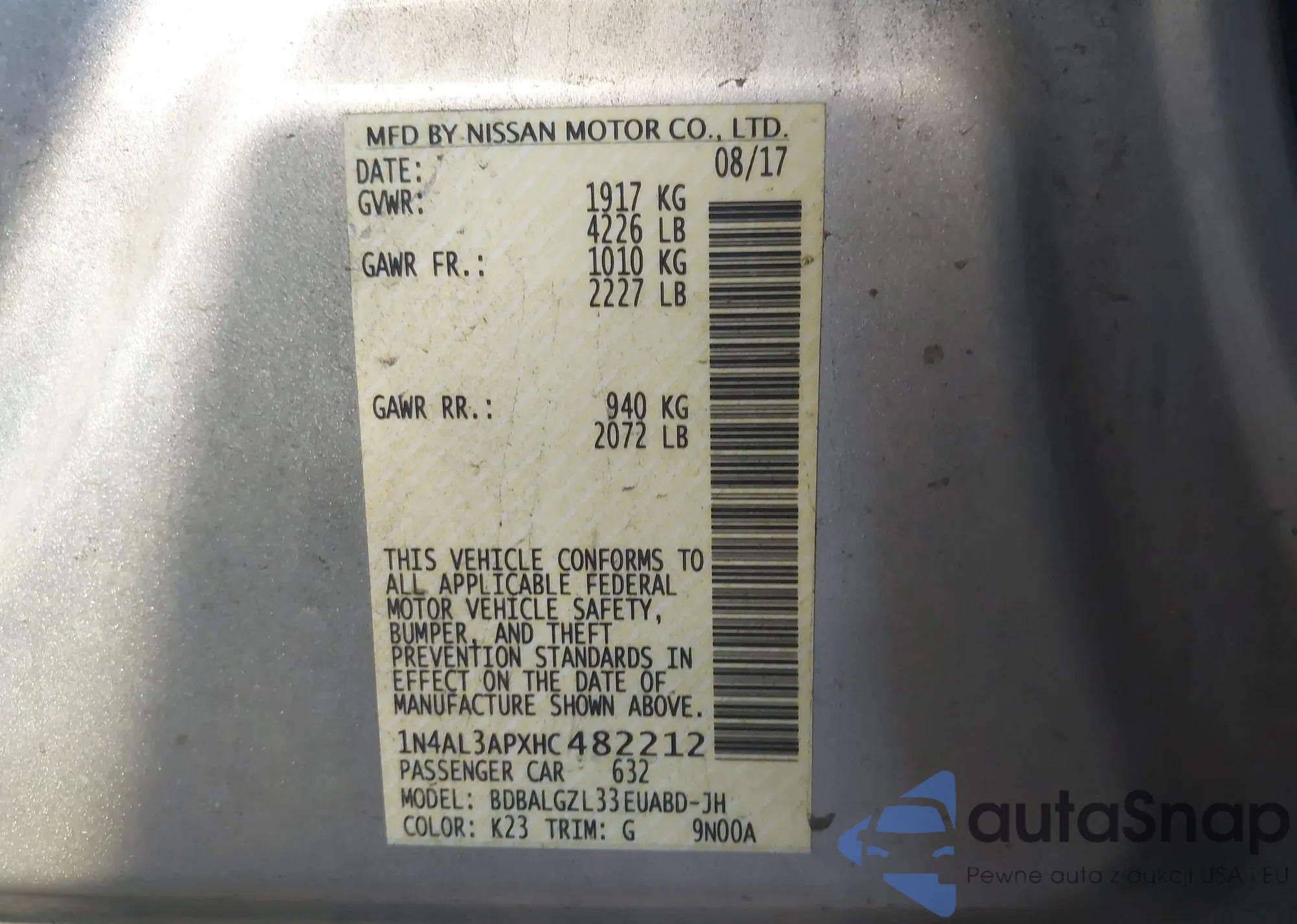 VIN: 1N4AL3APXHC482212