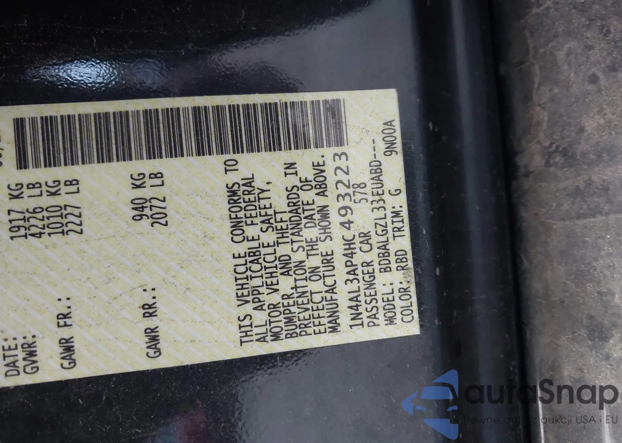 VIN: 1N4AL3AP4HC493223