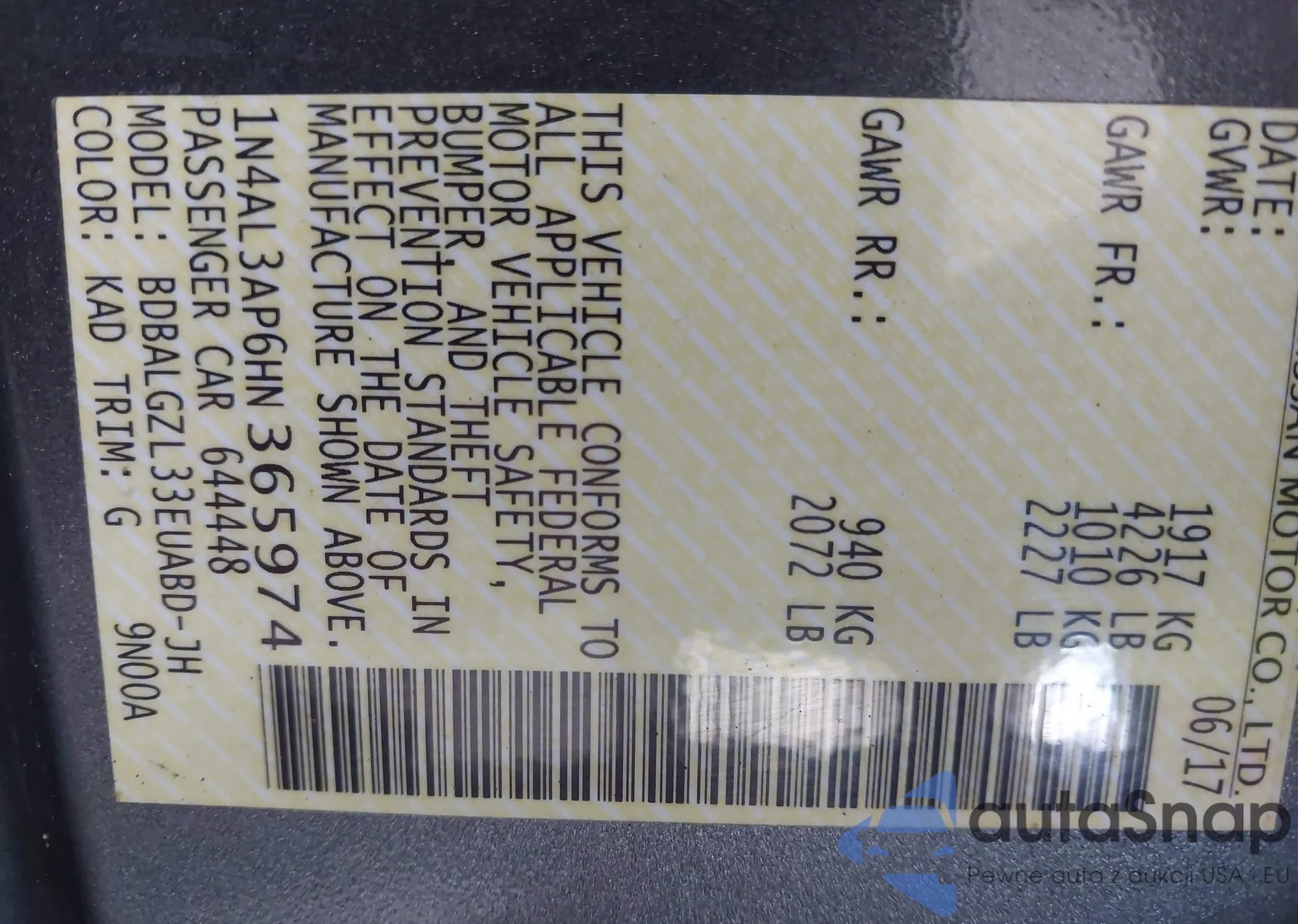 VIN: 1N4AL3AP6HN365974