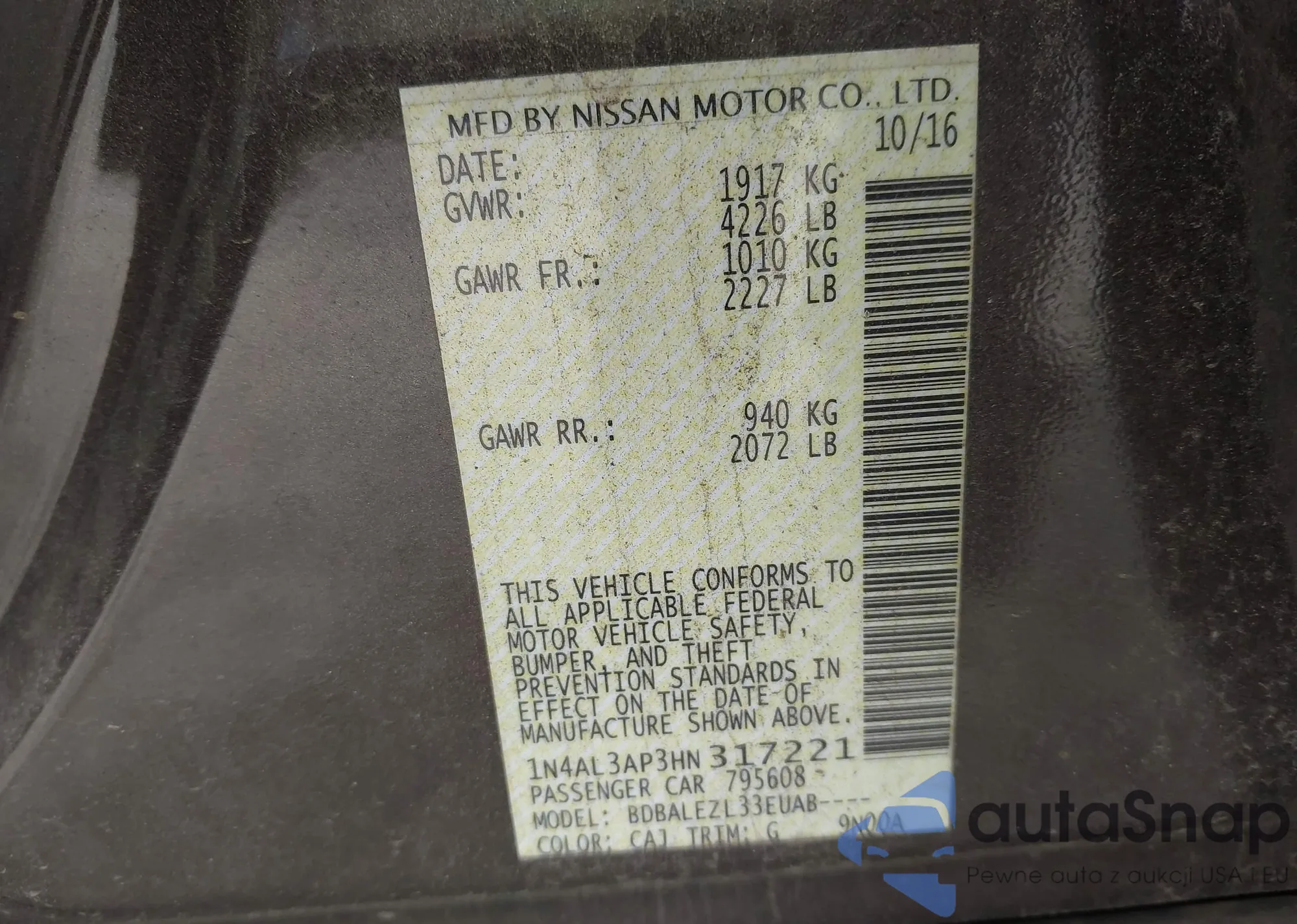 VIN: 1N4AL3AP3HN317221