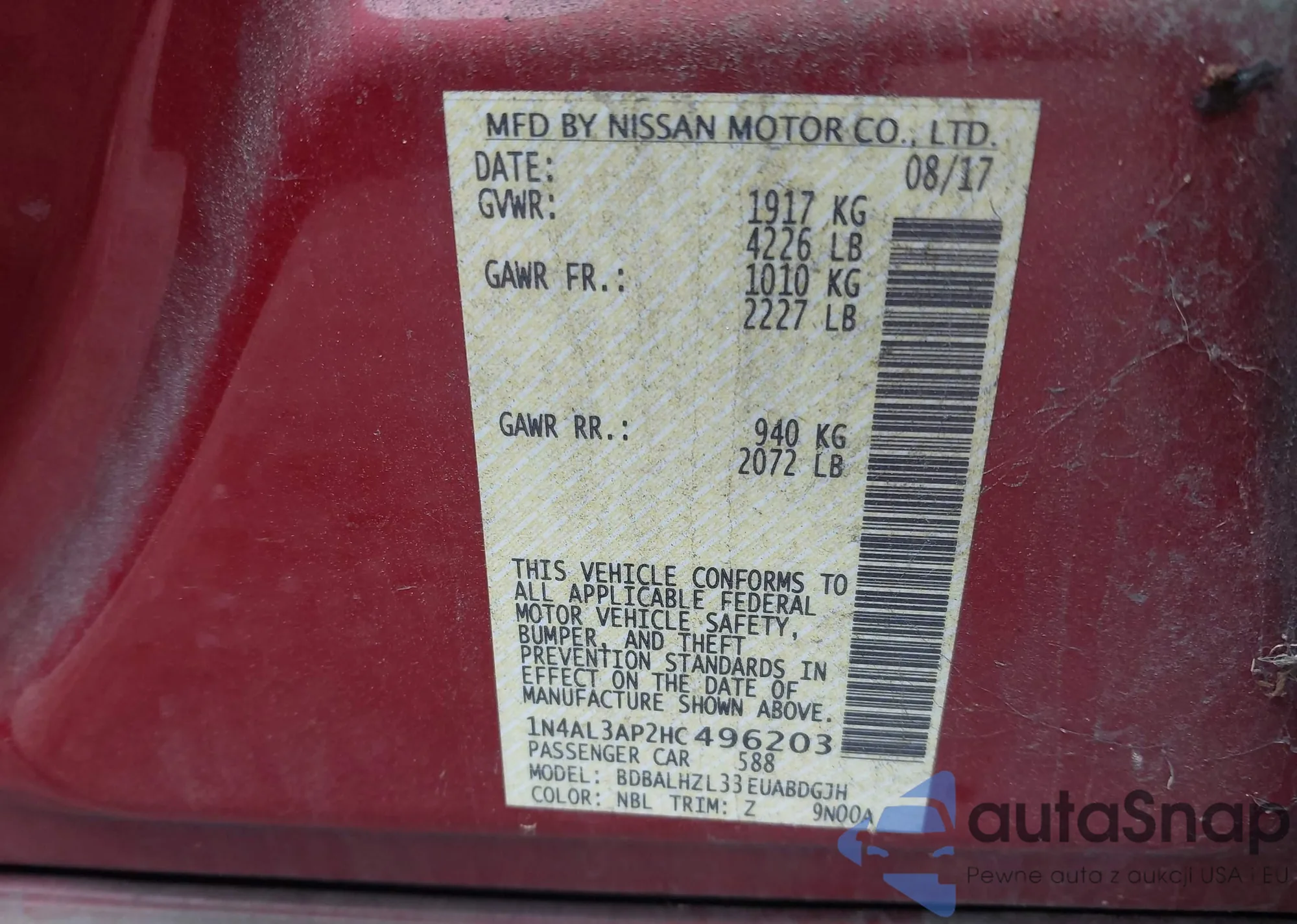 VIN: 1N4AL3AP2HC496203