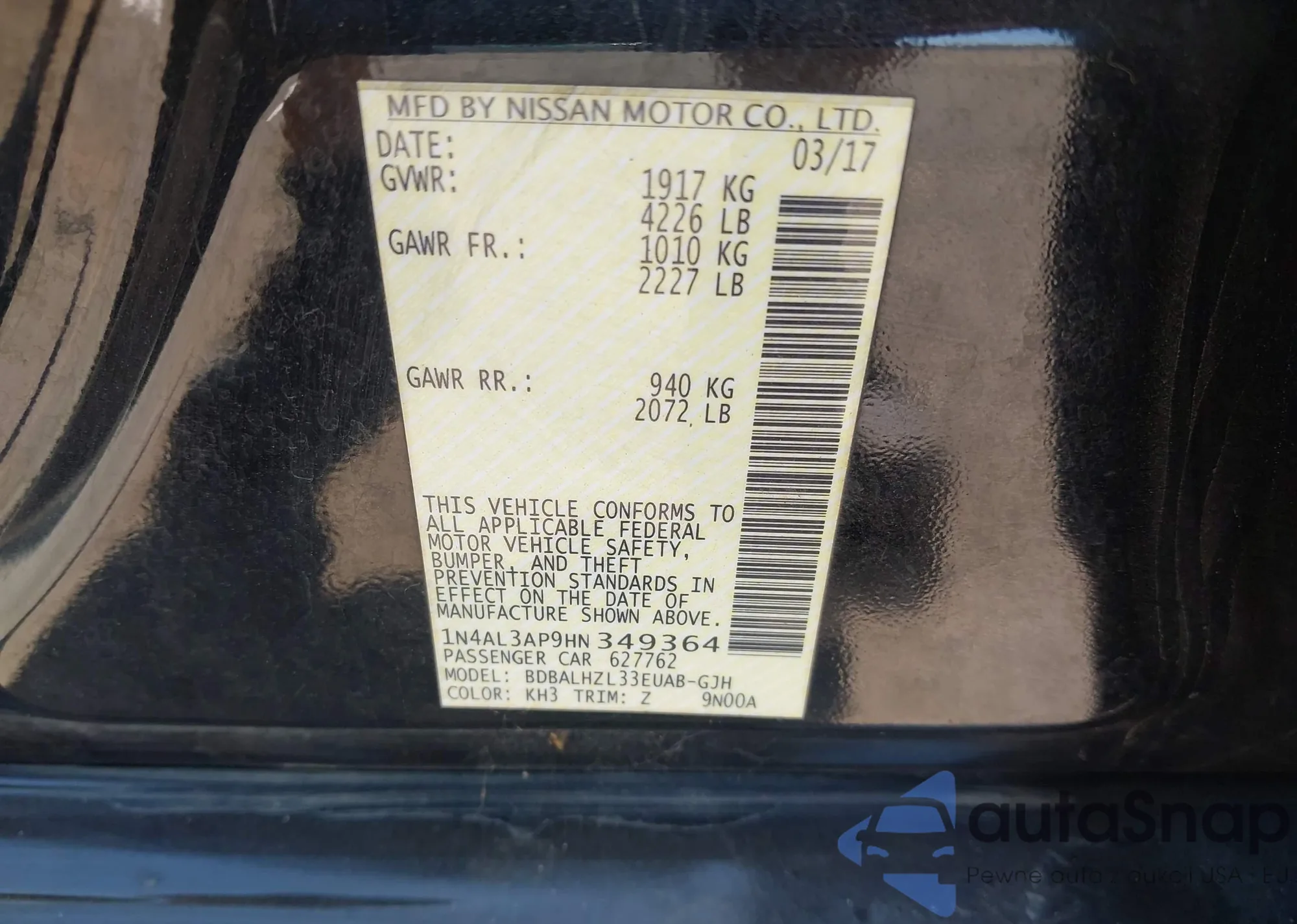 VIN: 1N4AL3AP9HN349364