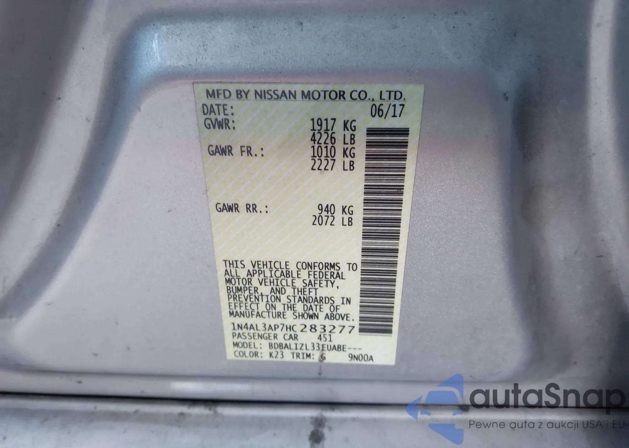 VIN: 1N4AL3AP7HC283277