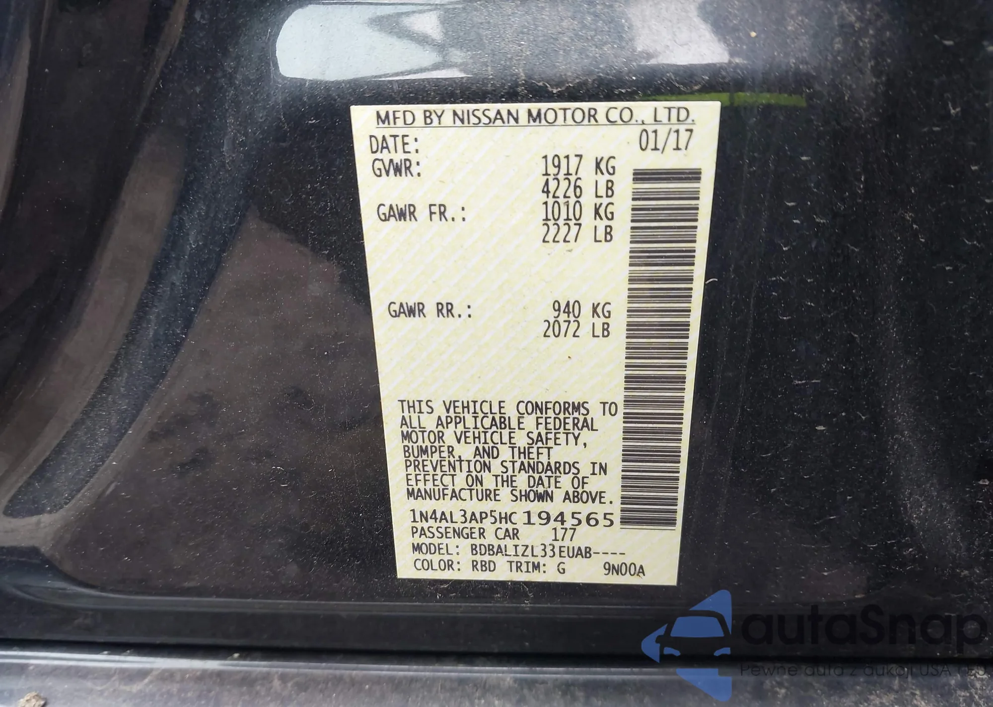 VIN: 1N4AL3AP5HC194565