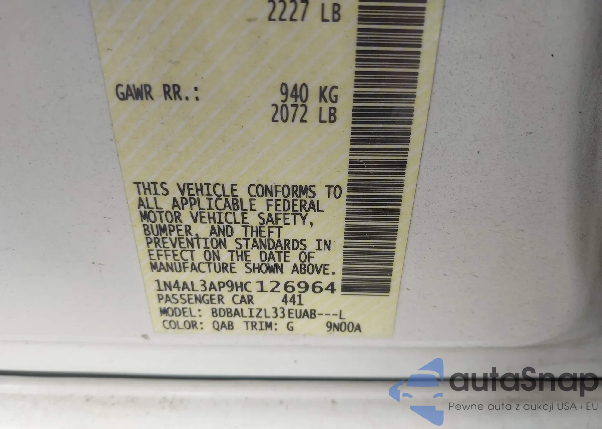 VIN: 1N4AL3AP9HC126964