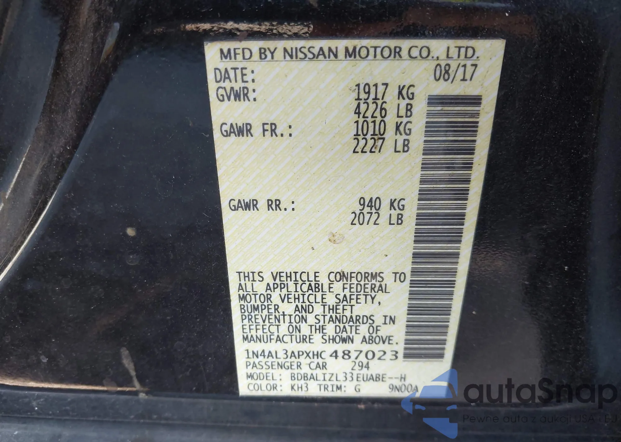 VIN: 1N4AL3APXHC487023