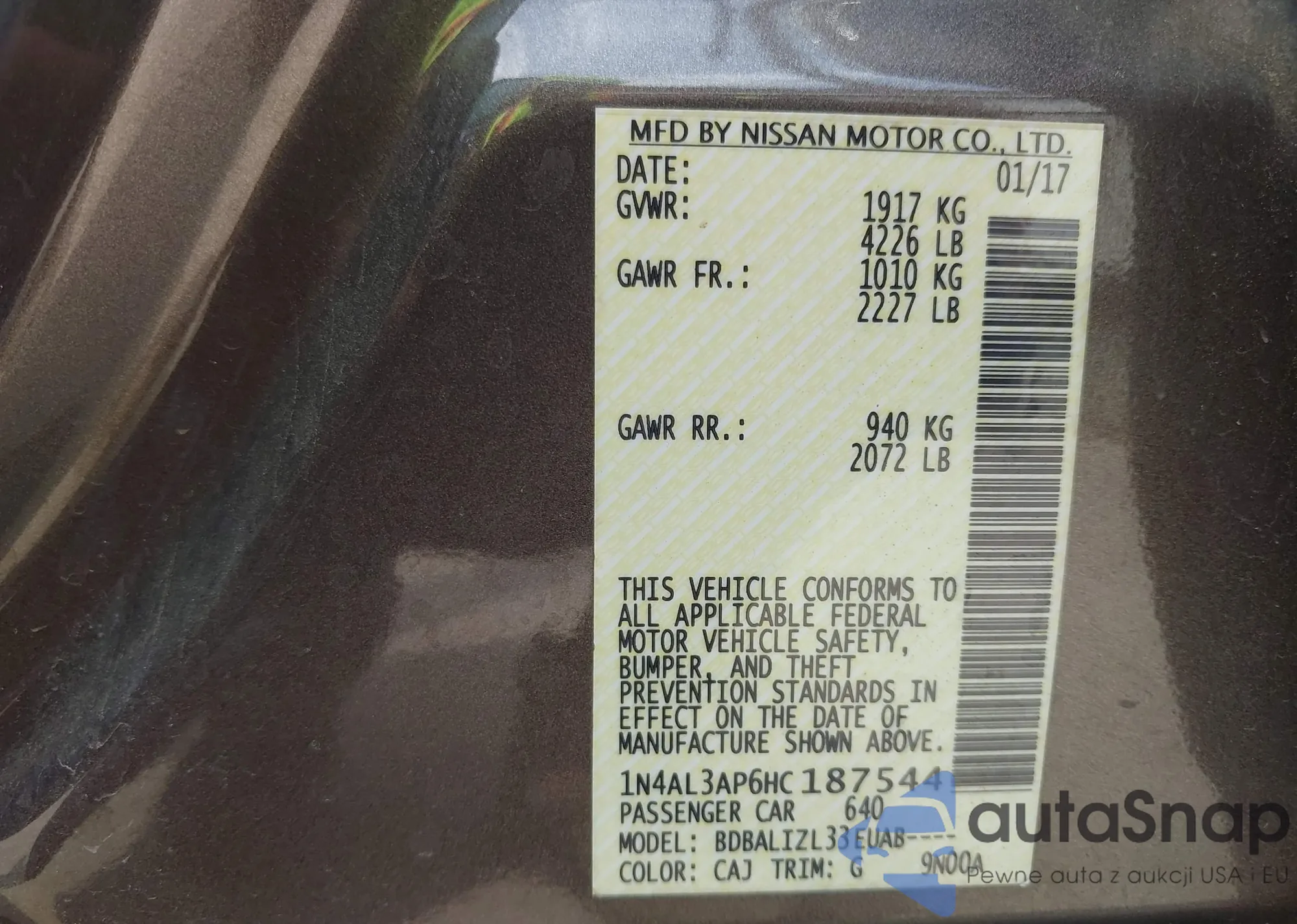 VIN: 1N4AL3AP6HC187544