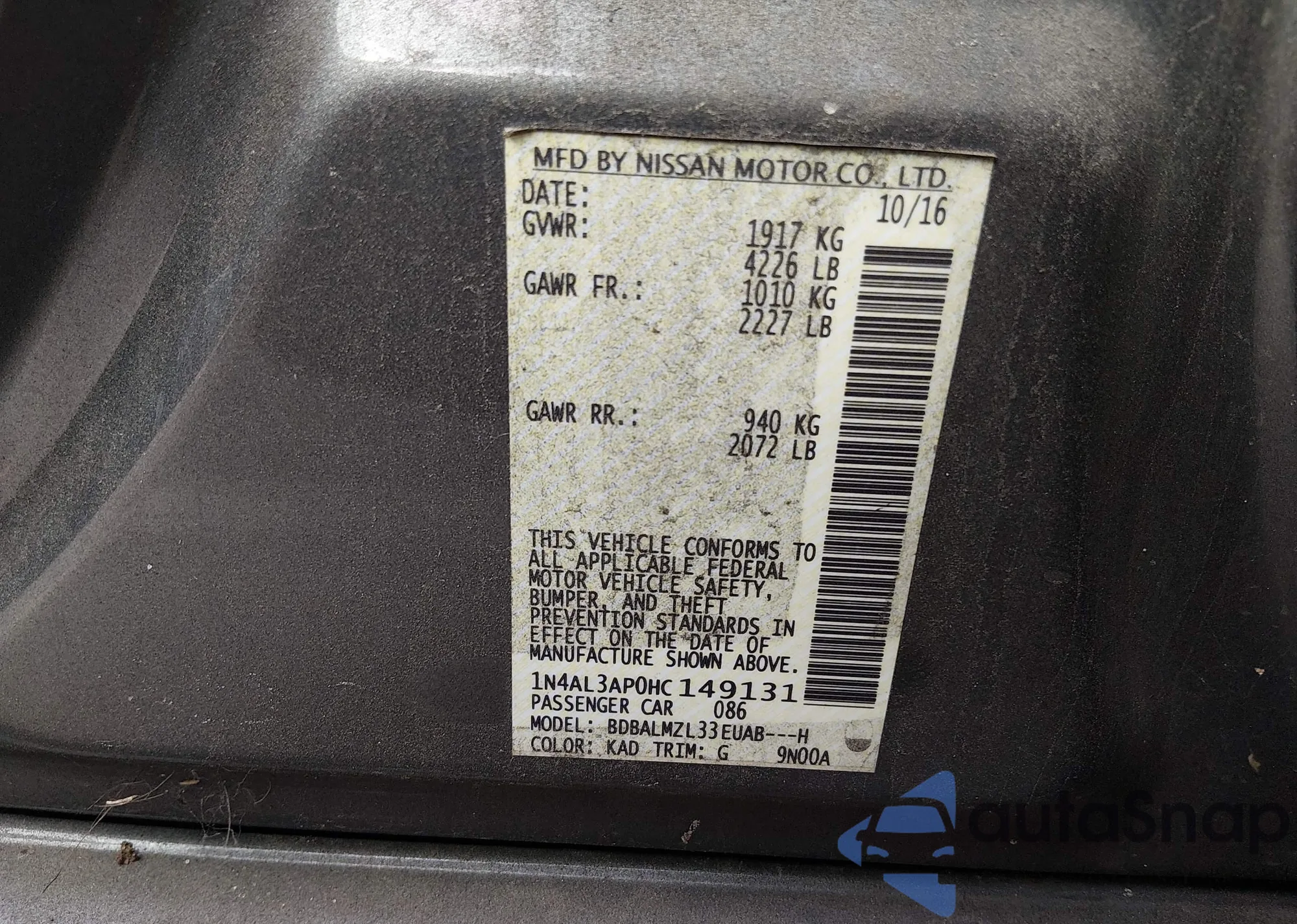 VIN: 1N4AL3AP0HC149131