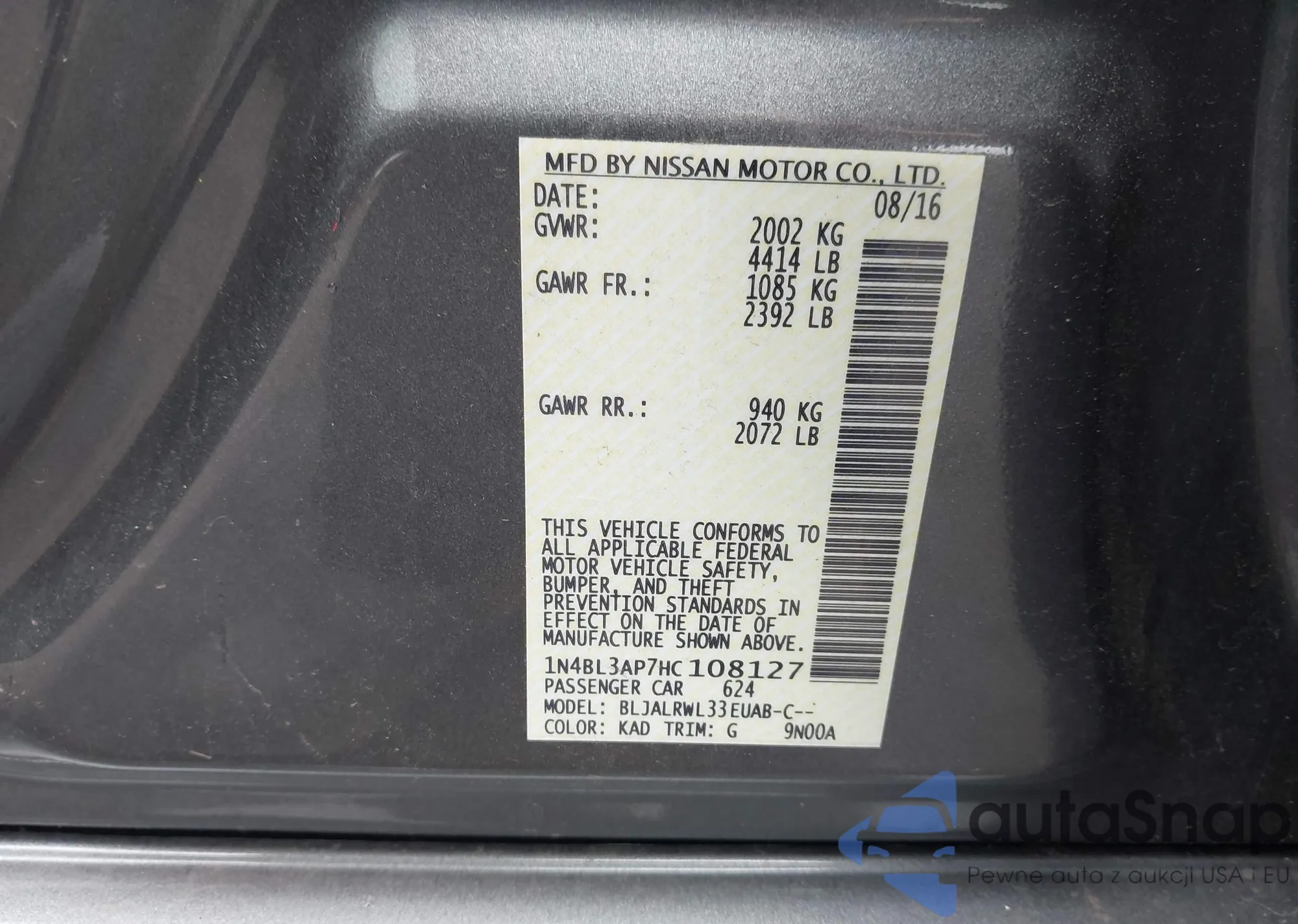 VIN: 1N4BL3AP7HC108127